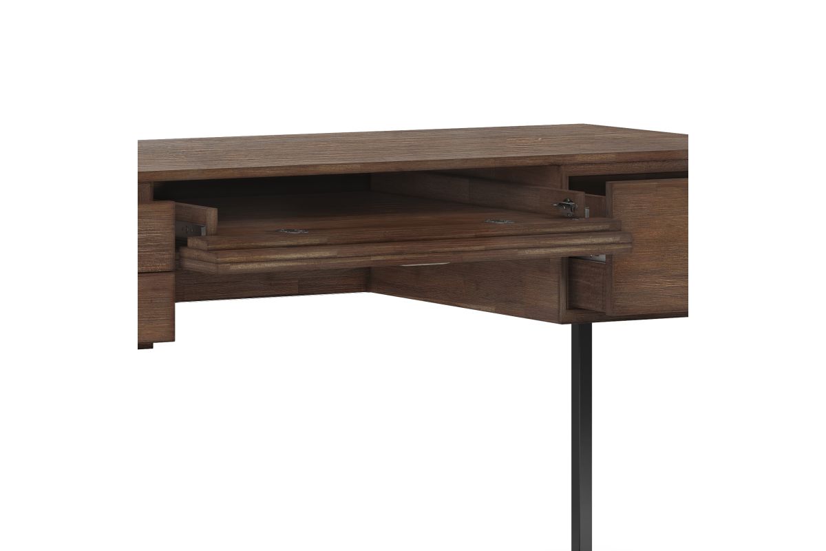 Combine industrial style and function with the Richmond Desk. This desk is crafted of solid Acacia with solid metal legs and frame. Generous in size, this desk offers a spacious top surface and includes a keyboard tray for added convenience. Two side drawers provide plenty of space for small office supplies. It is a versatile and stylish addition to your home or office work space. Assembly required.