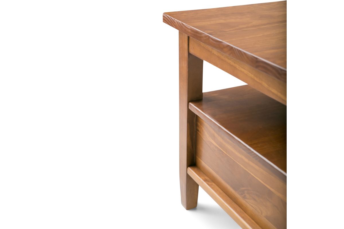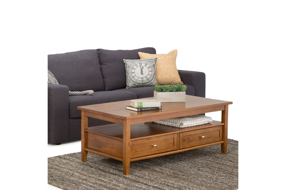 Sometimes you want to be noticed and sometimes you need to keep a low profile...we understand that completely. Keeping this in mind, we designed the Warm Shaker Coffee Table. Two bottom drawers open to provide ample storage options for remote controls, magazines and the like while leaving the table surface clutter-free. Open shelf provides additional storage. This beautiful and versatile Coffee Table can fit easily in your space...and turn heads at the same time. Assembly required.