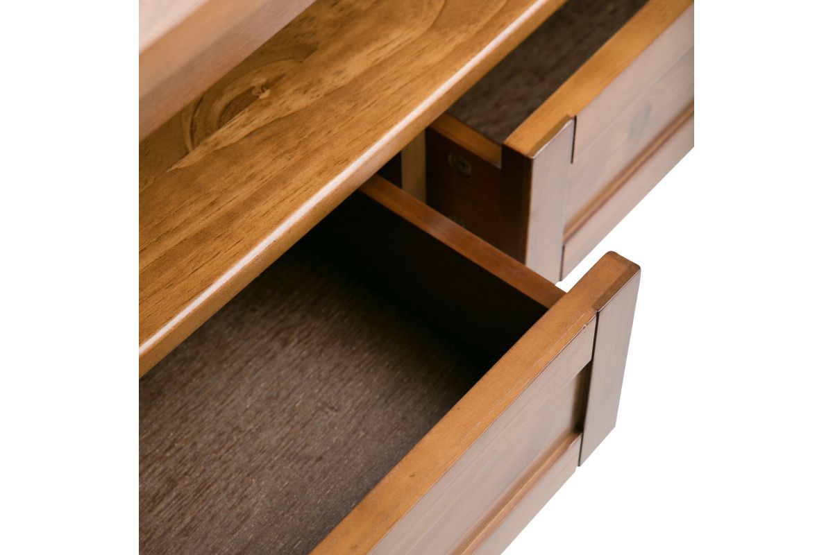 - Hand-finished with a Light Golden Brown stain and protective NC lacquer to accentuate and highlight the grain and the uniqueness of each piece of furniture