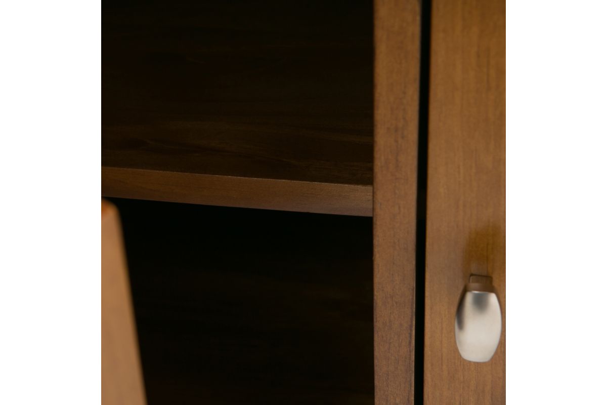 - Features 3 shaker style doors that open to large internal storage area with shelves