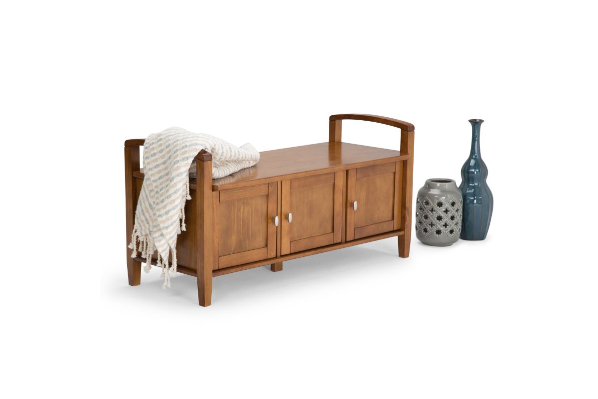 The Warm Shaker Storage Bench, made from the finest solid wood, allows your inner designer to shine through while creating added storage and seating for your entryway or mudroom. "Form follows function" design rules apply here as the bench features three enclosed storage compartments allowing for easy retrieval of articles from within. Assembly required.