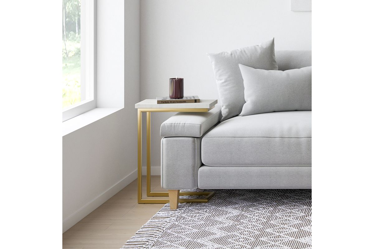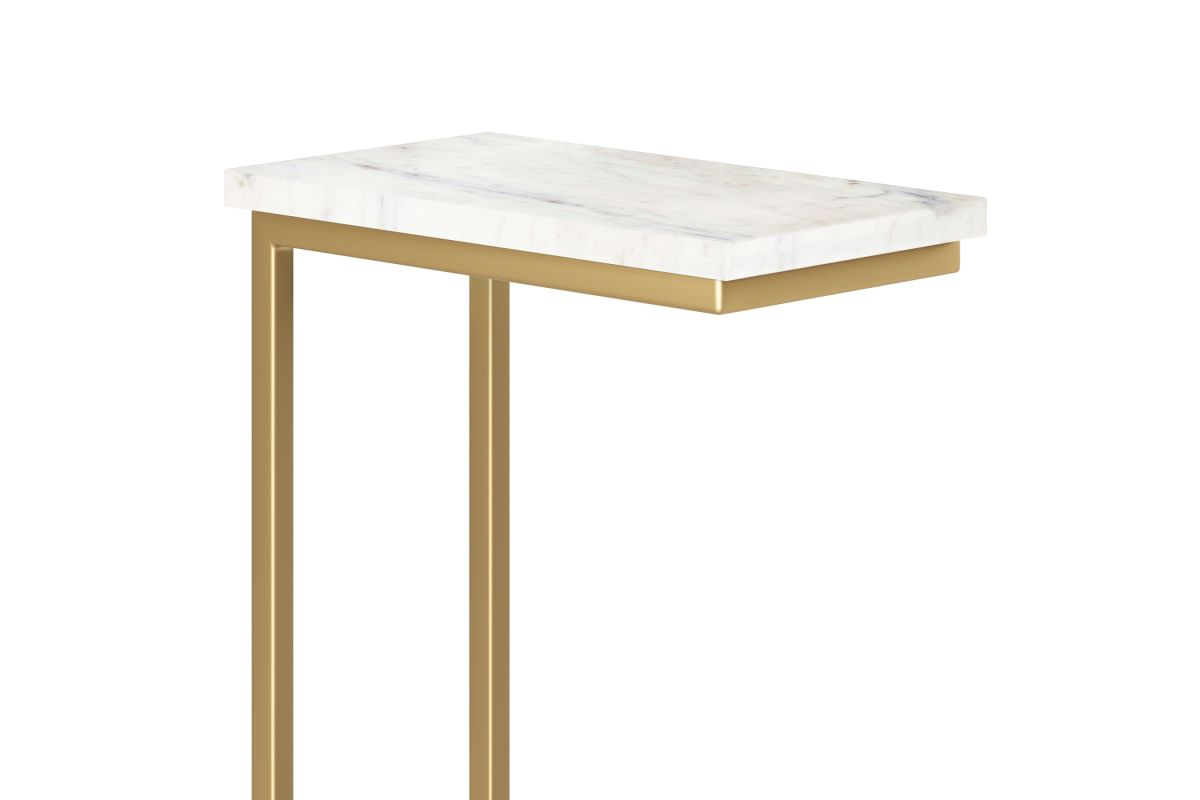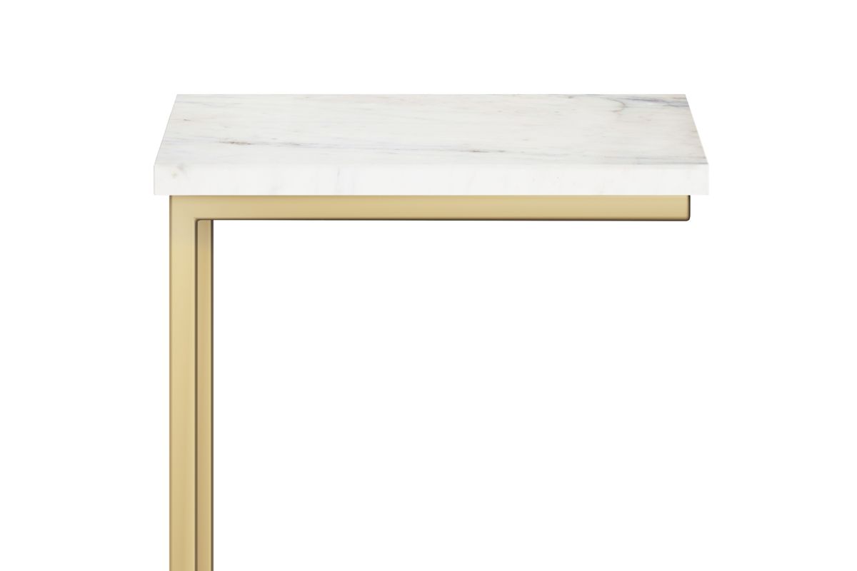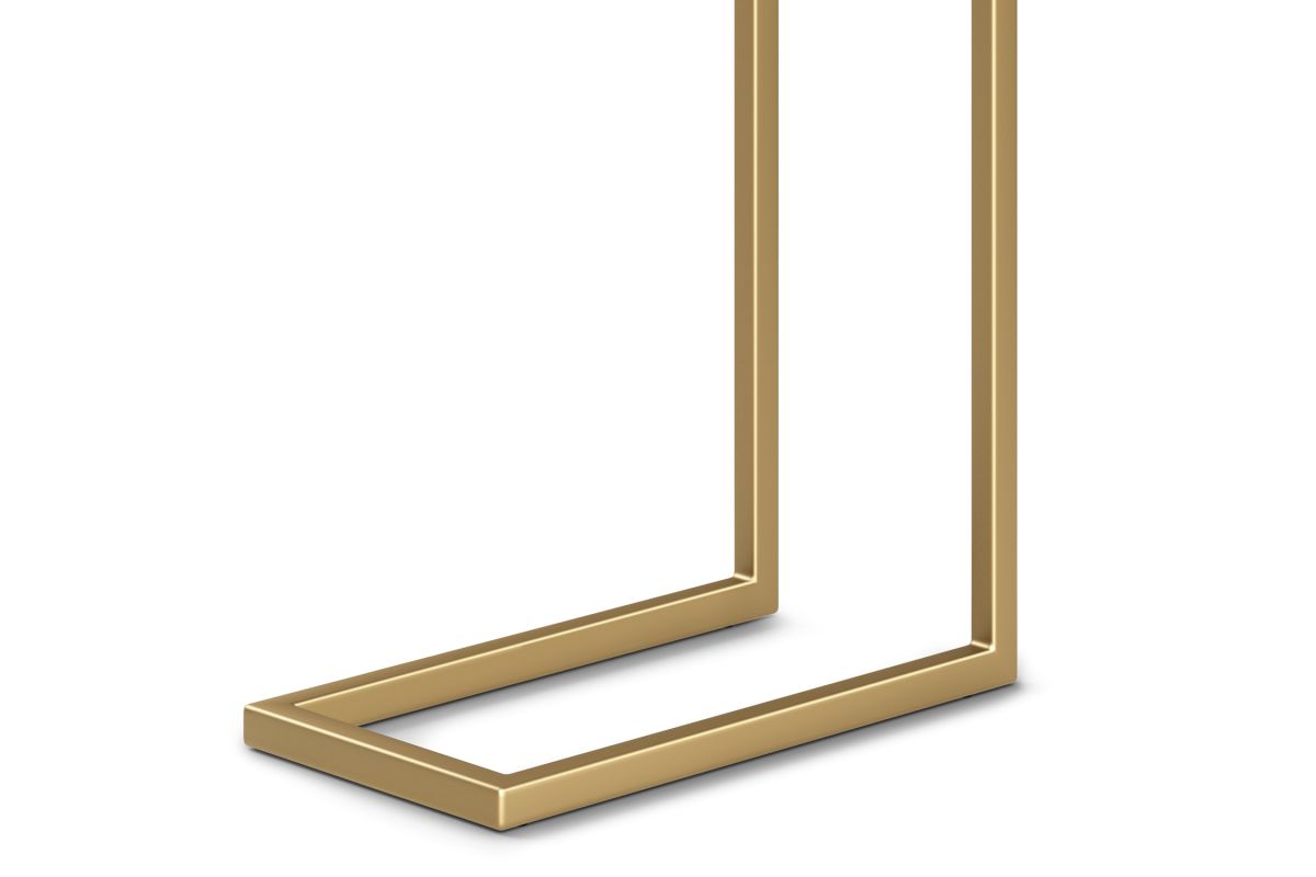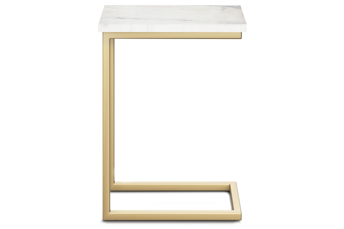 The Skyler C Side Table blends industrial sophistication with practical functionality, making it a perfect companion for contemporary living spaces. Featuring a genuine white marble top, each table showcases unique veining, adding a touch of natural elegance. The sleek gold metal frame provides sturdy support while creating a bold contrast against the smooth marble surface. Designed for versatile use, this C-shaped table easily slides under sofas or beds, keeping essentials within reach while saving space. Whether holding your morning coffee, displaying décor, or serving as a work-from-home setup, this compact yet stylish piece enhances any room. Handcrafted with high-quality materials, it reflects Simpli Home’s commitment to craftsmanship, durability, and timeless design. Assembly required.