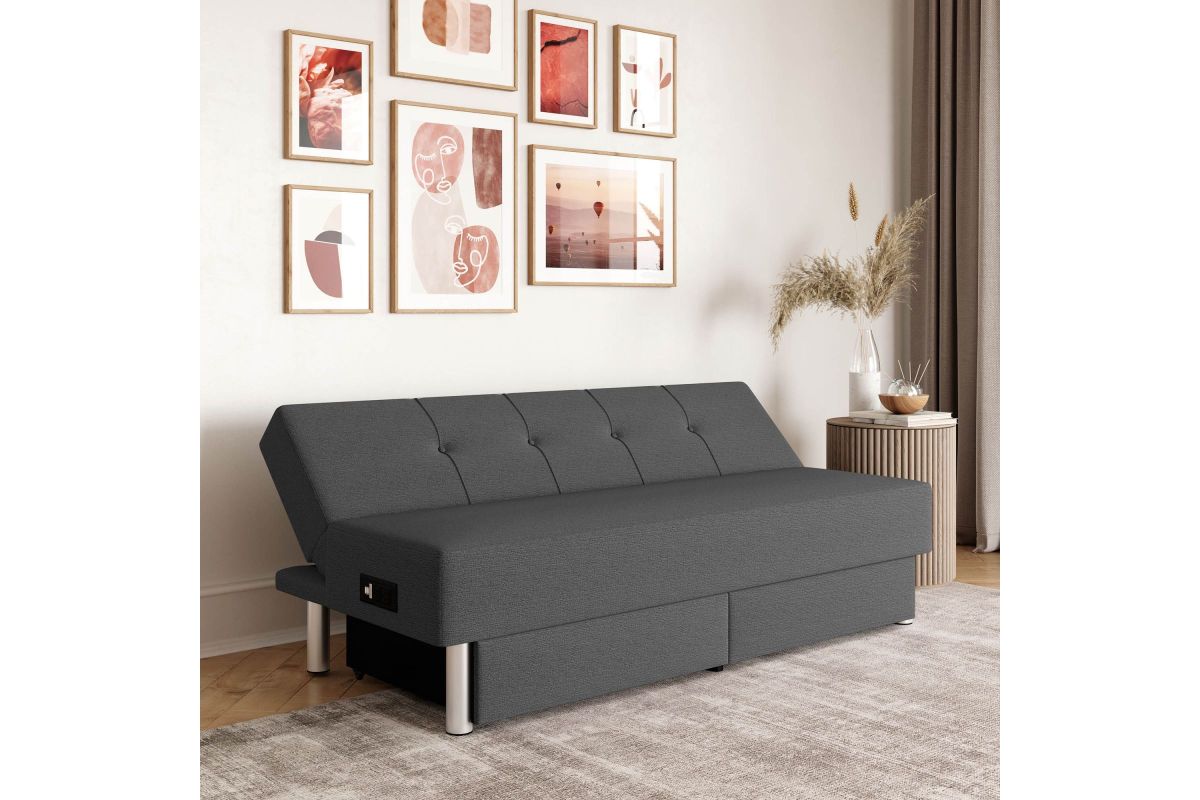 Serta Westchester Sofa Sleeper is a stunning convertible sofa that seats 3 and transforms into a twin-size sleeper. Beneath the Westchester are two pull out storage drawers which are ideal for sheets, pillows, and additional bedding. The Westchester also offers a power station allowing you to stay charged and connected with two outlets and two USB ports. The conversion from sofa to sleeper is a breeze with click-clack technology and we’ve installed Finger Guard protection so that you’re protected from injury when you’re converting. The Chrome finish metal legs add plenty of durable and stability plus complete the ultra-modern look of the Westchester.