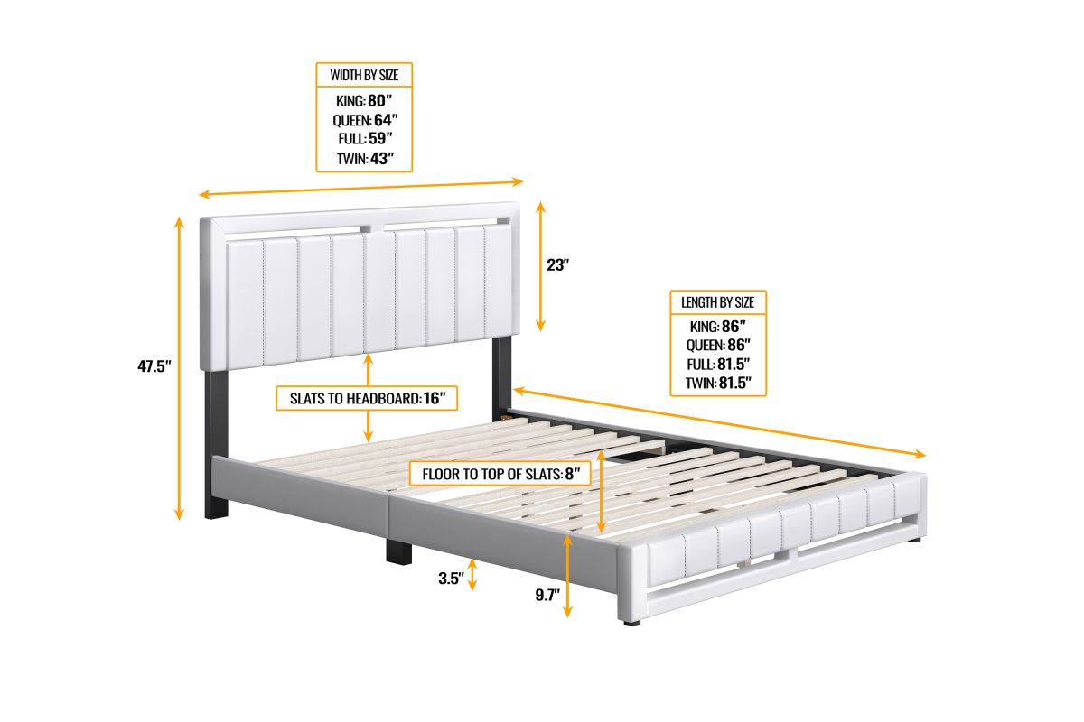 This stately upholstered platform bed frame features vertical channel tufting on the headboard with matching footboard that extends to the floor for a unique, polished focal piece for any bedroom. Frame is wrapped and slightly padded for a premium look and feel. Bed comes with a full 14-slat system that will support up to 700 lbs. No box spring or foundation required. Ships in 1 box for easy transport. Assembles in under 15 minutes, and all hardware is conveniently zipped up behind the headboard. 1 Year Limited Warranty.