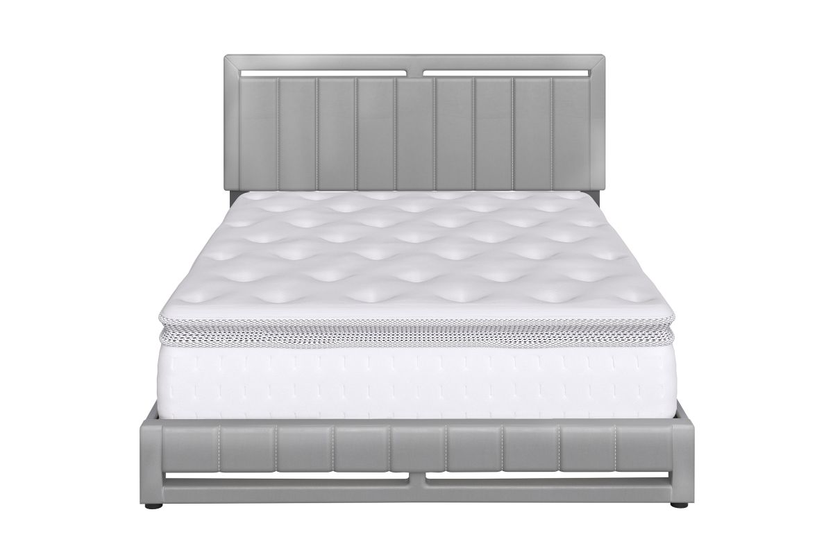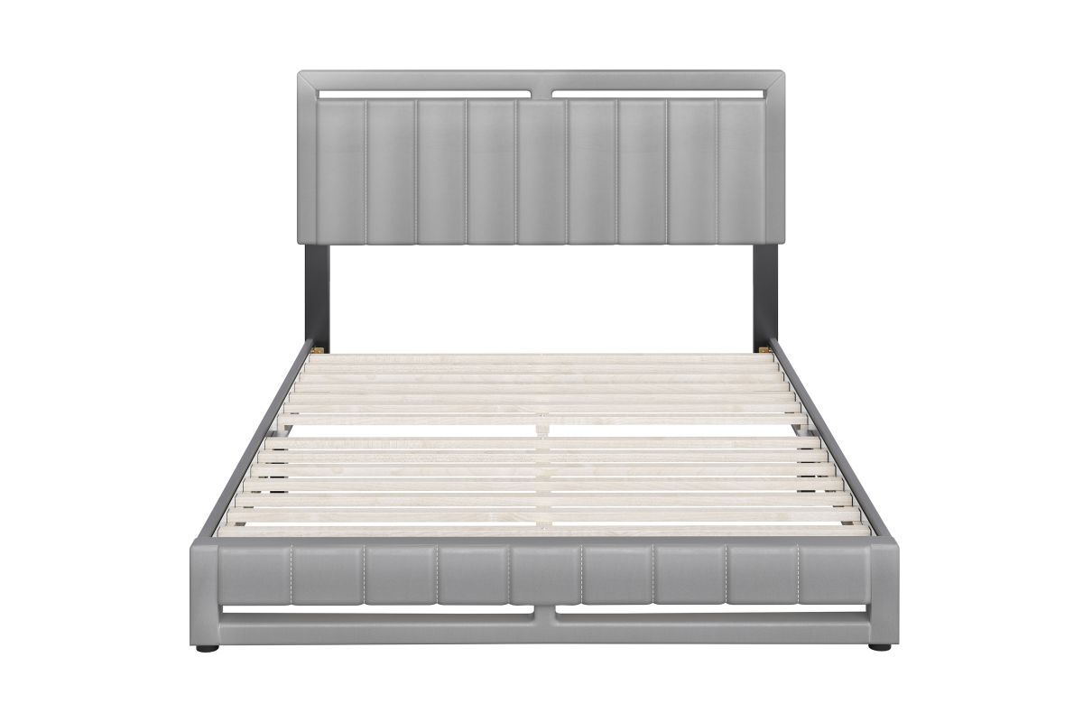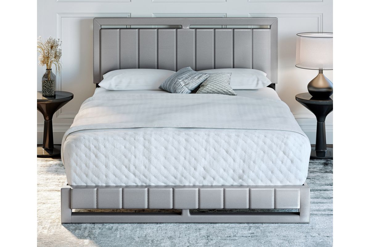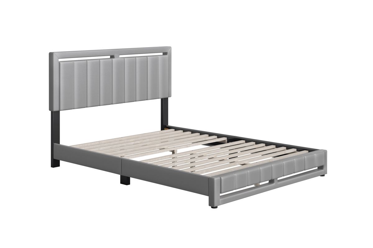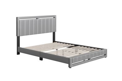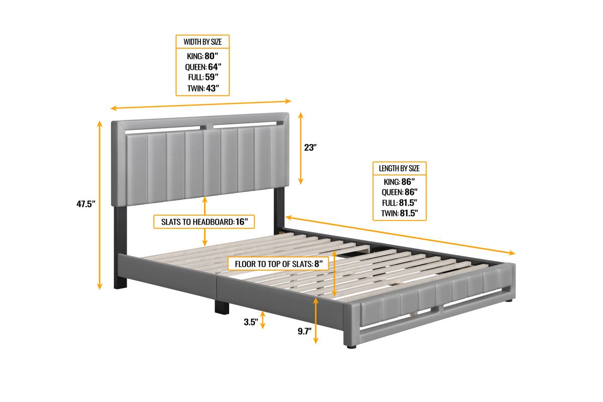 This stately upholstered platform bed frame features vertical channel tufting on the headboard with matching footboard that extends to the floor for a unique, polished focal piece for any bedroom. Frame is wrapped and slightly padded for a premium look and feel. Bed comes with a full 14-slat system that will support up to 700 lbs. No box spring or foundation required. Ships in 1 box for easy transport. Assembles in under 15 minutes, and all hardware is conveniently zipped up behind the headboard. 1 Year Limited Warranty.