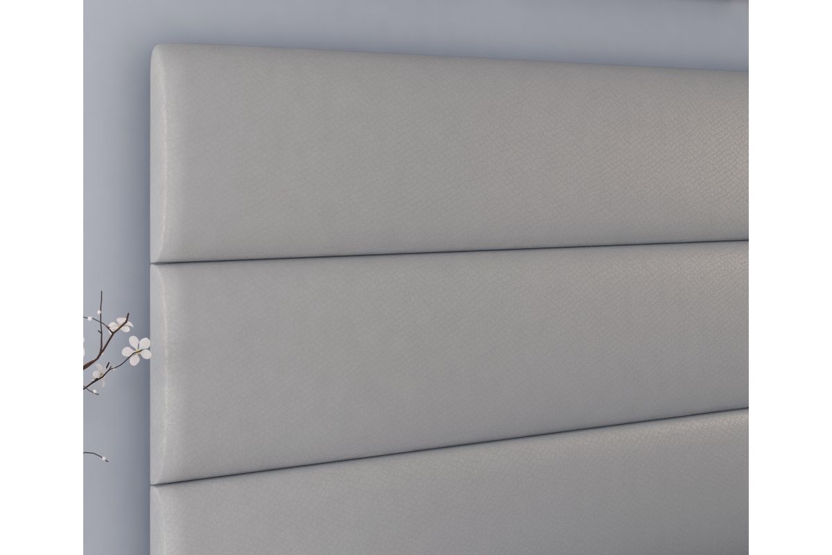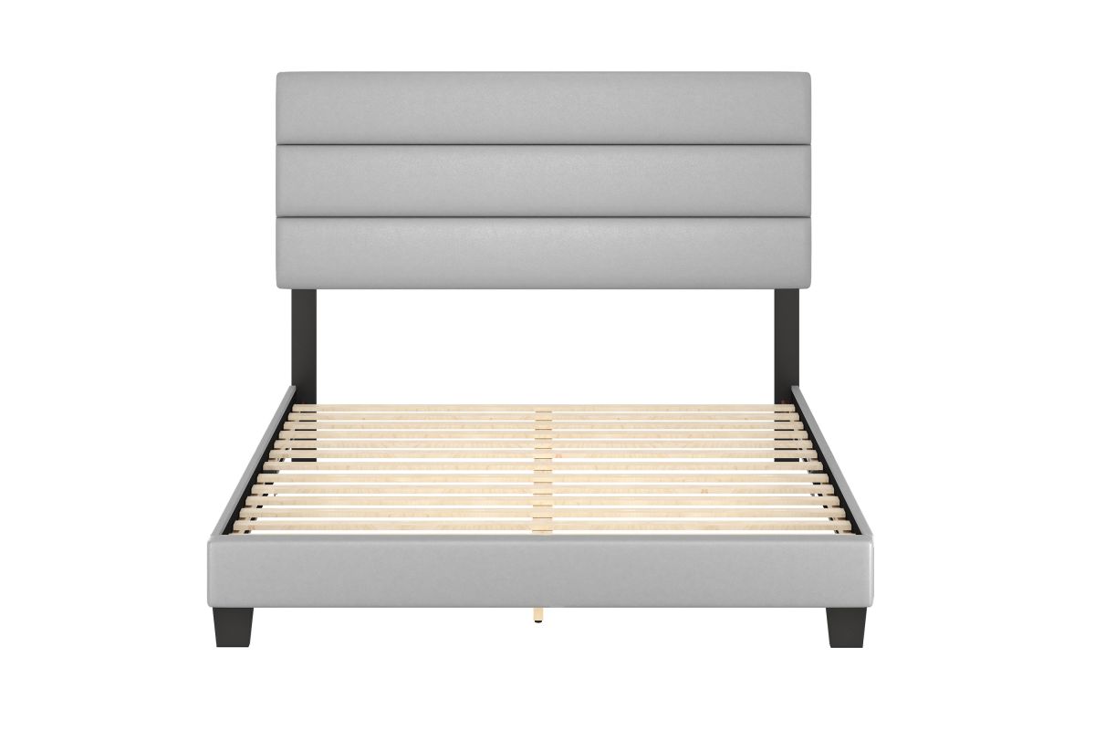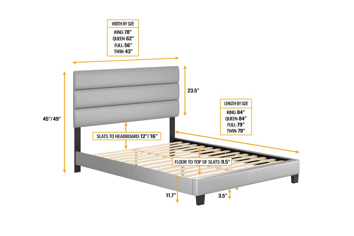 Clean, modern lines define this upholstered platform bed, making it the showpiece in any setting. The horizontal lines of the tri-panel headboard create a linear design concept you can easily accentuate with your favorite decor. Manufactured with high quality materials, the entire bed is upholstered and slightly padded for a premium look and feel.
