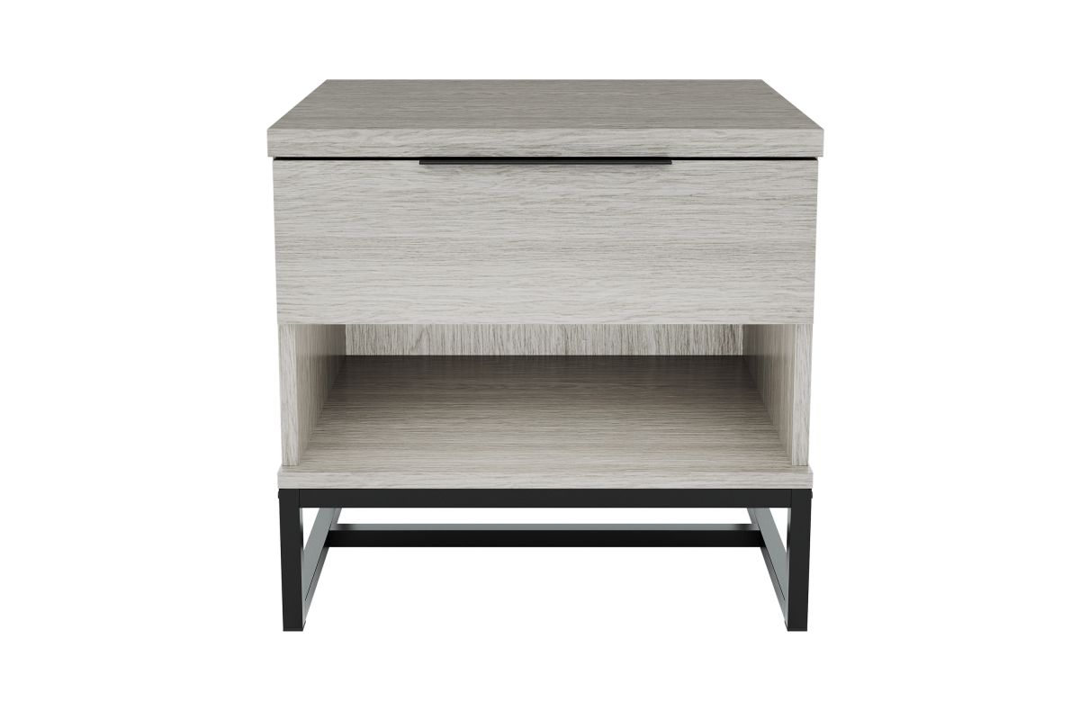 Keep the essentials in arm's reach with the Boyd Sleep Mondavi Single Drawer Modern Nightstand. This bedside table offers two types of storage with a sleek, modern design. A single drawer keeps small items tucked away, while a lower open cubby fits your current read. Euro glides allow the drawer to open and close smoothly with minimal sticking. This end table is constructed from durable, heavy-duty composite wood with a laminate wood grain finish. The Mondavi is available in Black, White, and Farmhouse Gray to coordinate with your existing bedroom furniture. Easily fits in modern, contemporary, mid-century, farmhouse, and rustic industrial style environments. With its versatility and good looks, you will enjoy Boyd Sleep's Mondavi Single Drawer Modern Nightstand for many years to come. Ships in 1 box, assembles in under 30 minutes. Assembly is required.