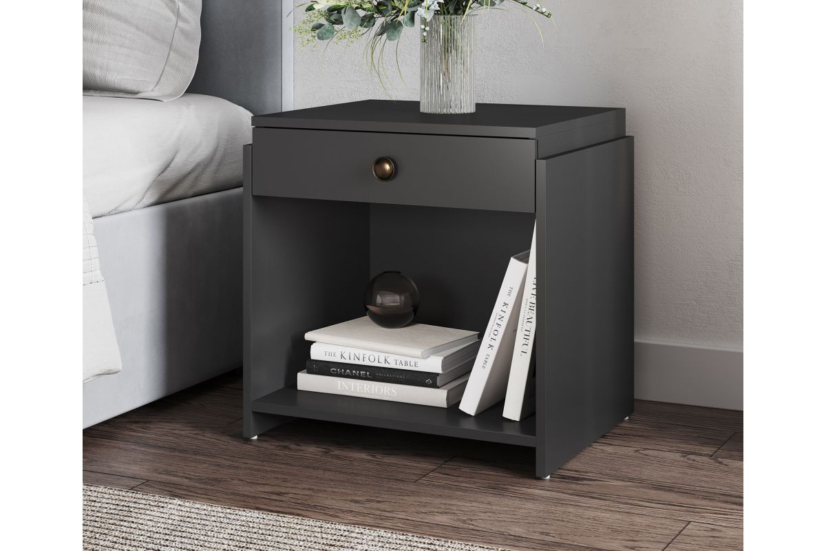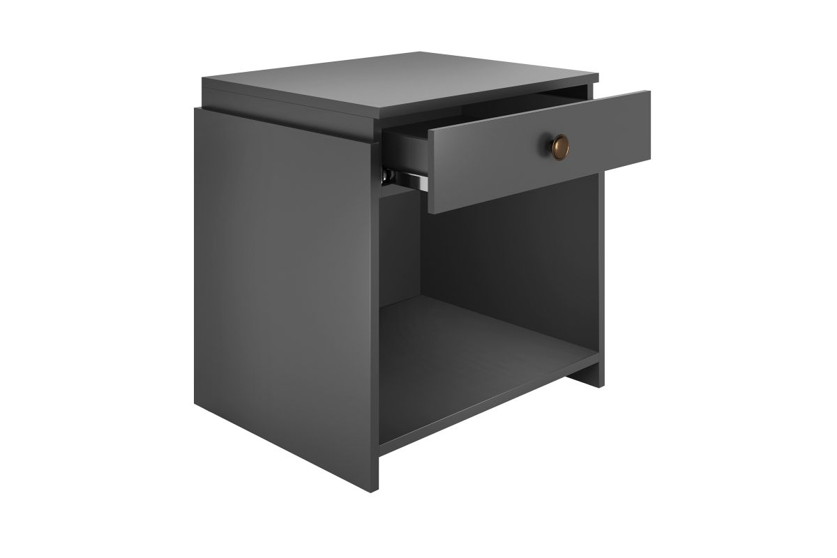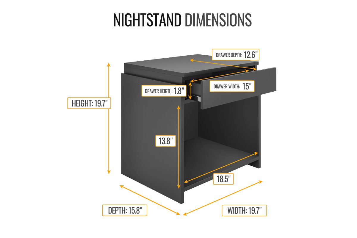 Cute as a button, big on storage! The Sanford One Drawer Storage Nightstand gives you the best of both worlds. This petite bedside table is styled with simple, traditional lines that will fit into any decor. The Sanford has room for all your essentials; a single slim drawer keeps your glasses and phone within arm's reach, while the open lower cubby allows you to store bulky items like books or extra blankets. Quiet euro-glides and a brushed pewter drawer pull give the Sanford One Drawer Storage Nightstand extra polish. This table's clean lines can also provide a multifunction storage solution for living rooms, home offices, or dorm rooms. Thanks to three different shades of wood-grain finish, the Sanford One Drawer Storage Nightstand offers timeless appeal to any space. Arrives straight to your door in one convenient box and assembles in minutes (2 adults recommended for assembly). Assembly is required.
