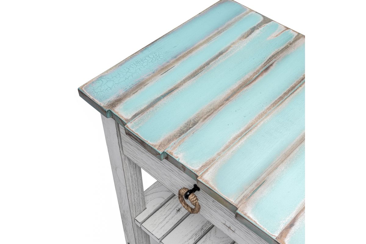 Add timeless modern style to any living space with the Picket Fence End Table. Its Mindi Wood and White Cedar frame and distressed finish give it a stylish yet rustic feel. The drawer is built with dovetail joints and full extension ball bearing drawer glides for easy storage, with ring pulls made of natural rope. This end table is sure to become a staple in any home!
