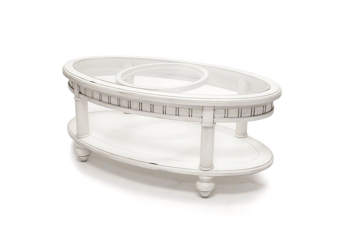 Add a timeless touch to your living room with the Monaco Oval Coffee Table, crafted from kiln-dried solid wood and finished in a light glaze and distressed, white-painted exterior. With easy assembly (all necessary hardware included) and a tempered glass top, this coffee table is a classic and stylish choice that will enhance any home.