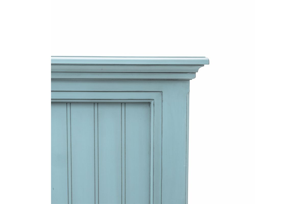 Bring timeless beauty to your bedroom with the handmade Monaco Headboard. Crafted from solid and sustainable Mindi Wood (White Cedar), this elegant headboard features light glaze and a distressed white or blue finish. Its kiln-dried frame is durable and sturdy, and installation is a breeze, with feet that are quickly secured using the included tools. Enjoy the beauty and quality of this headboard for years to come!