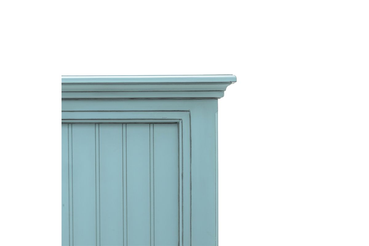 Bring timeless beauty to your bedroom with the handmade Monaco Headboard. Crafted from solid and sustainable Mindi Wood (White Cedar), this elegant headboard features light glaze and a distressed white or blue finish. Its kiln-dried frame is durable and sturdy, and installation is a breeze, with feet that are quickly secured using the included tools. Enjoy the beauty and quality of this headboard for years to come!