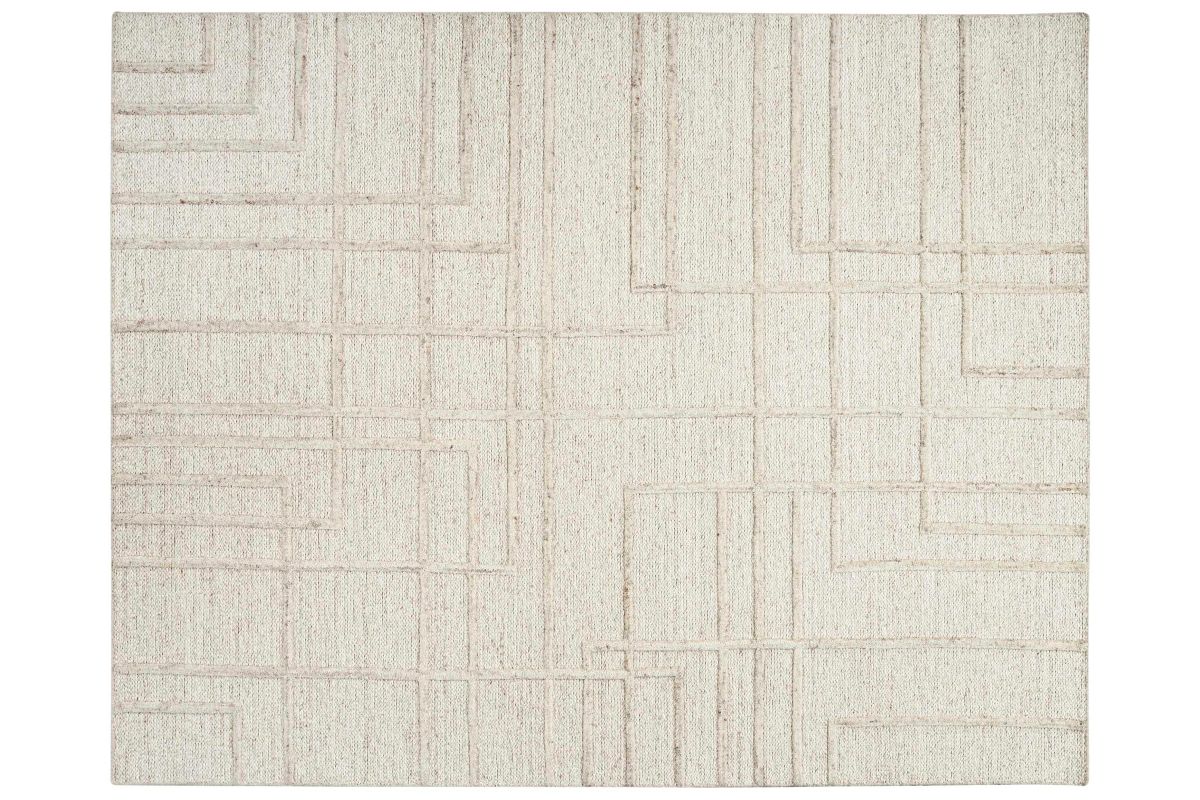 Elevate your space with this modern, textural area rug designed for effortless sophistication. Showcasing a subtle geometric pattern created through layered lines and tonal variation, this rug adds depth and interest while maintaining a clean, minimalist look. The soft neutral palette brings warmth and versatility, making it easy to pair with a wide range of furniture and décor styles.