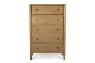 This lower-profile 5-drawer chest is the perfect blend of refined style and everyday functionality. Crafted from solid maple with a warm maple finish, it offers generous storage in a streamlined silhouette ideal for compact spaces or modern interiors. Each drawer is built with English dovetail construction and full-extension ball-bearing glides, while the top drawer is fully felt-lined to keep delicate items safe. Designed to complement the coordinating low-profile bed, this chest brings both beauty and practicality to your bedroom.