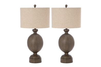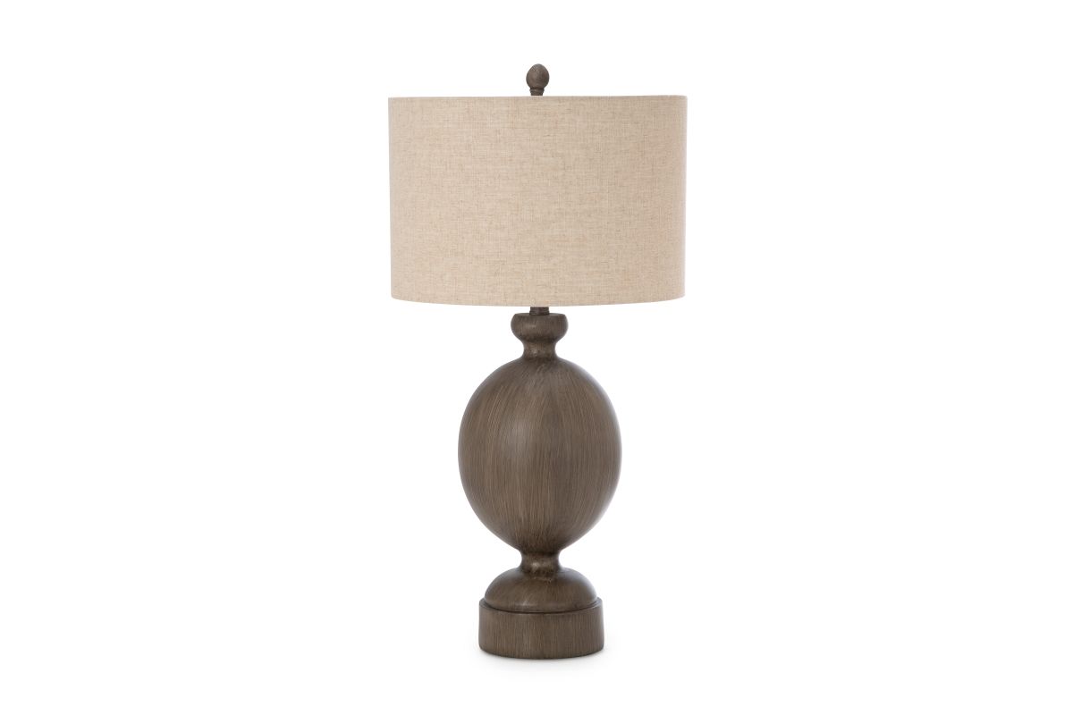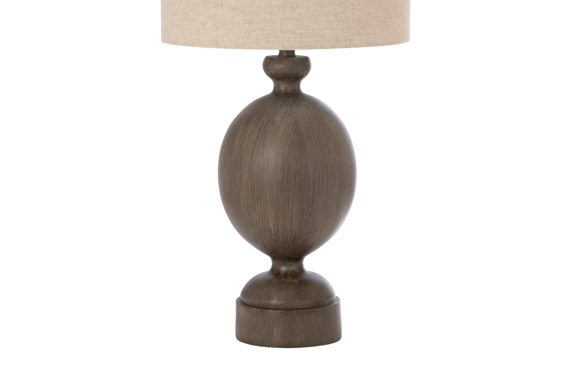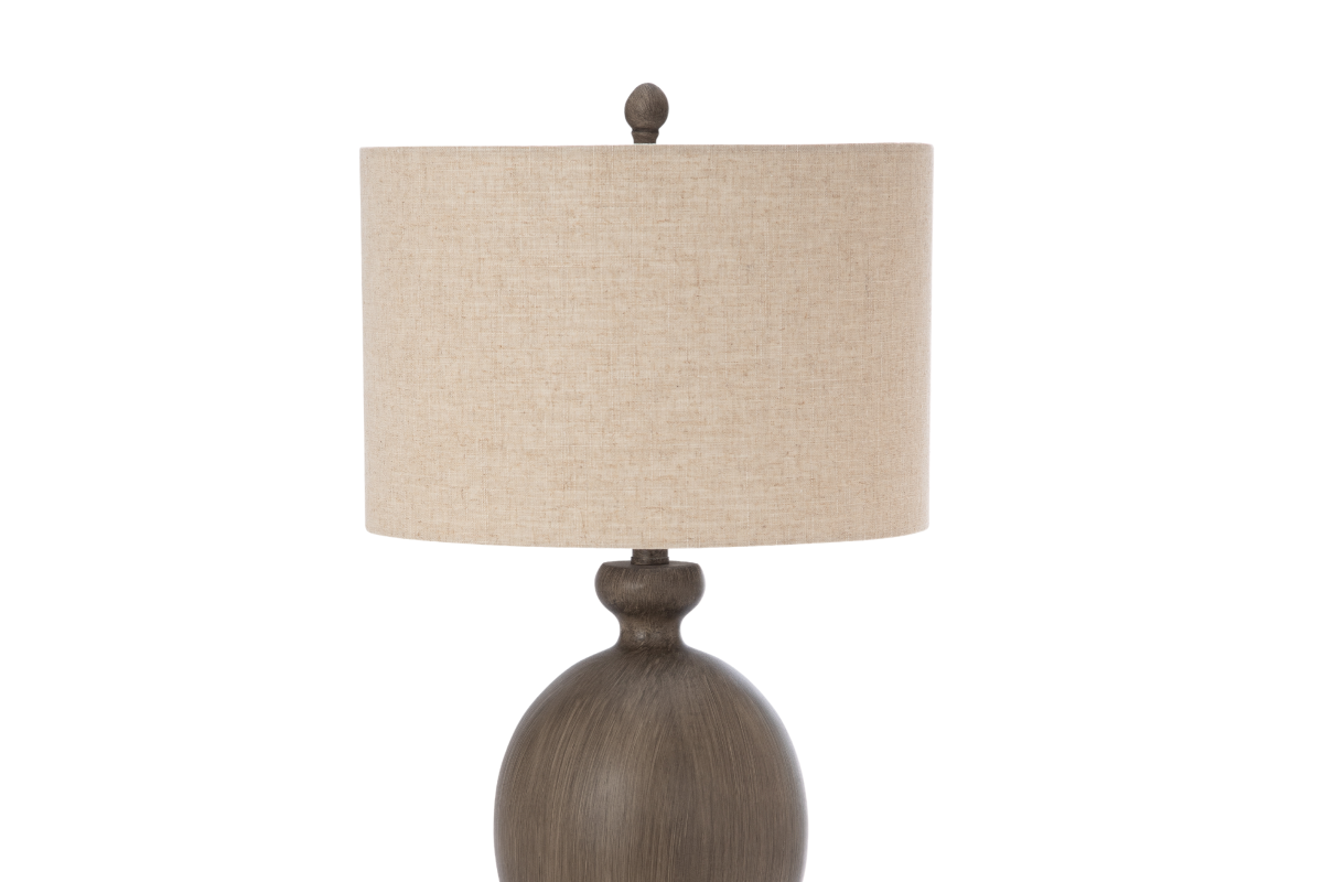 The lamp's base, crafted with meticulous detail in distressed brown poly resin, exudes a sense of rustic elegance. Standing at 30 inches, it commands attention while maintaining a classic and versatile presence that complements various decor styles. The distressed finish adds character and a touch of vintage allure to the lamp, making it an ideal fit for traditional interiors.