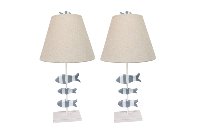The 28-Inch Blue and White School of Fish Table Lamp is more than just a lighting fixture; it's a piece of art that sparks joy and imagination. Whether placed in a child's room, a beach-themed space, or anywhere in need of a playful touch, it promises to be a captivating focal point that brings a touch of the sea indoors. Illuminate your surroundings with whimsy and charm using this exceptional lamp. Some assembly required.