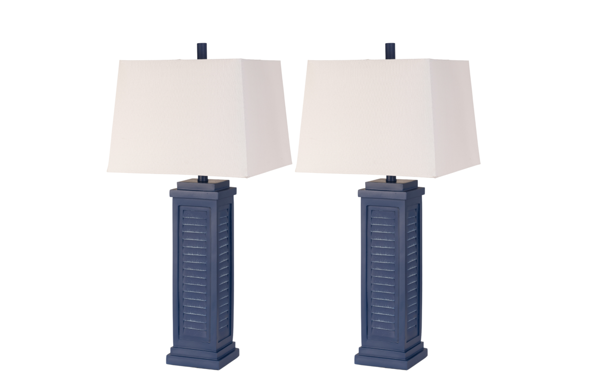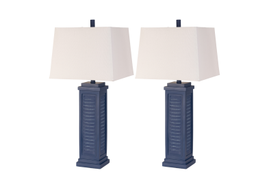 Introducing the 32-Inch Navy Blue Poly Resin Shutter Coastal Table Lamp, a charming and versatile lighting fixture that encapsulates the essence of seaside living. This lamp is not just a source of light; it's a coastal-inspired statement piece that brings the tranquil beauty of the shore into your space.