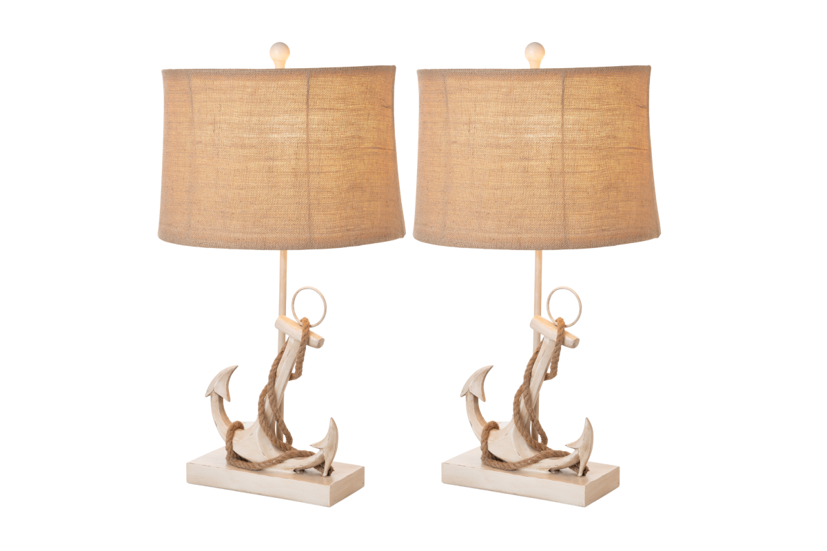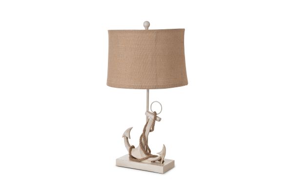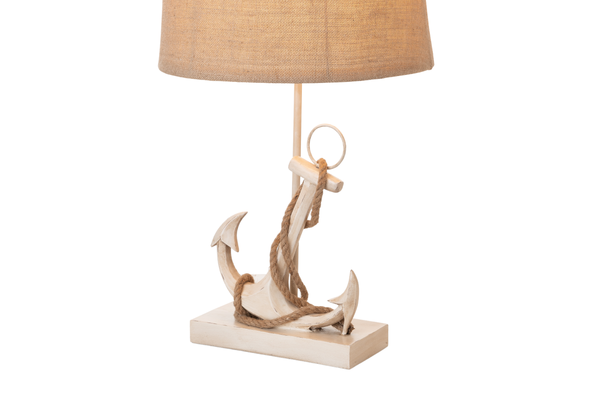 The lamp's base, meticulously crafted from durable poly resin, replicates the iconic anchor design in a charming distressed white finish. Standing at 28 inches, it effortlessly combines coastal charm with a versatile presence that complements various decor styles. The distressed finish adds a touch of weathered authenticity, giving the lamp character and visual interest that evokes memories of seaside explorations.