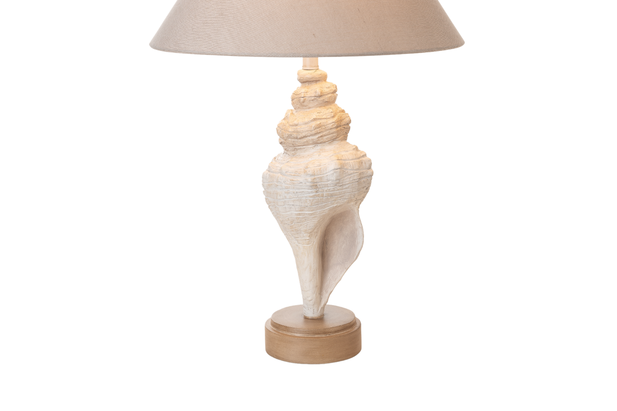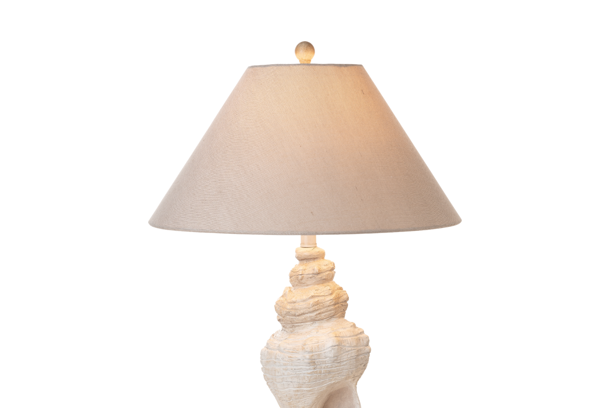 The lamp's base, meticulously crafted from durable poly resin, takes on the graceful form of a conch shell, a symbol of the ocean's mystique and tranquility. Standing tall at 30 inches, it seamlessly combines coastal elegance with a versatile presence that complements various decor styles. The conch shell design adds a touch of seaside charm and visual interest, making it a captivating addition to any room.