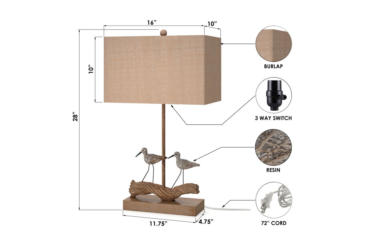 Introducing the 28-Inch Piper Coastal Lamp, a charming and whimsical lighting fixture that brings the tranquility of nature right into your living space. This table lamp is more than just a source of light; it's a work of art that captures the beauty of birds in their natural habitat.