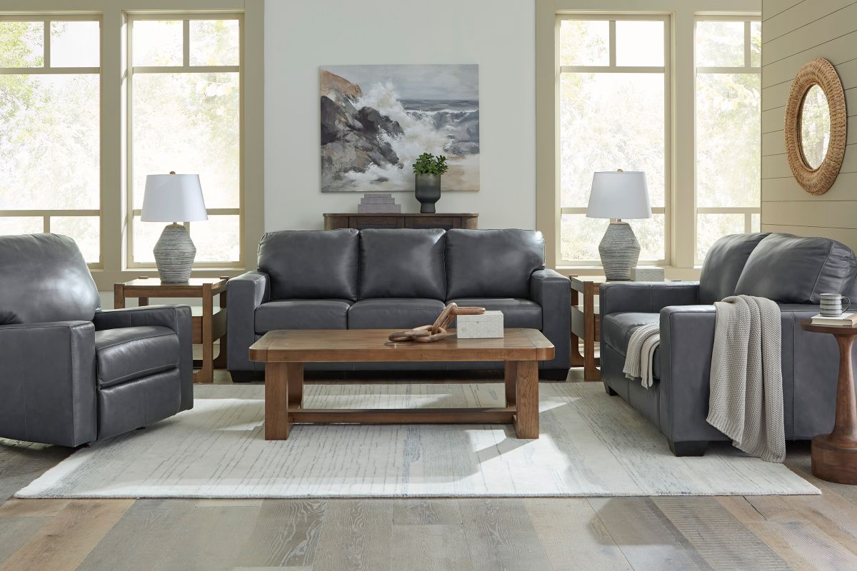 The Baker Collection combines contemporary style with practical comfort, making it a standout choice for today’s living spaces. Upholstered in top-grain leather available in rich caramel or classic blue, each piece offers a sleek, polished look that elevates any room. Designed with clean lines and a modern silhouette, the Baker Collection blends effortlessly with a variety of décor styles.