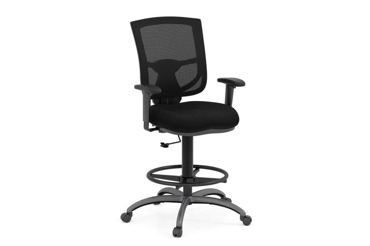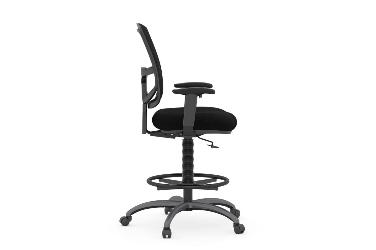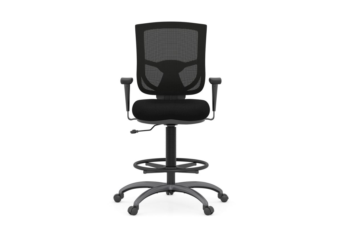 CoolMesh Pro Mesh Back Task Stool with Adjustable Arms, Upholstered Seat, Footring and Black Base