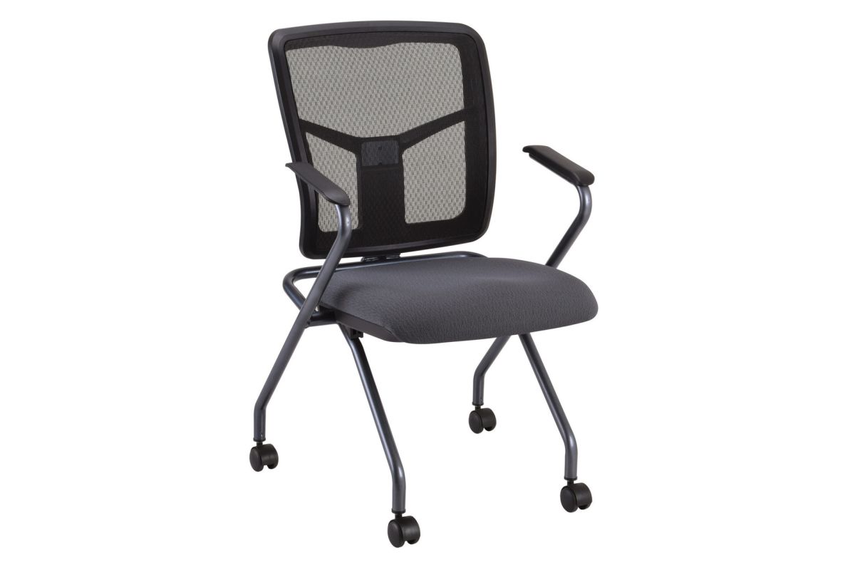 This nesting chair is a great seating alternative for both you and your guests. Due to its folding features, this chair allows you to keep it in an office storage area when not needed. This nesting chair has been a proven winner, and is recommended by almost every other professional. This chair comes with a mesh back for elevated levels of comfort. To make the aesthetics more appealing, the mesh upholstery is accompanied by a titanium gray frame, and a fabric seat in your choice of eight colors. There are even casters attached to the base of the chair for ease of mobility. This nesting chair can certainly be a great addition to your existing office furniture.