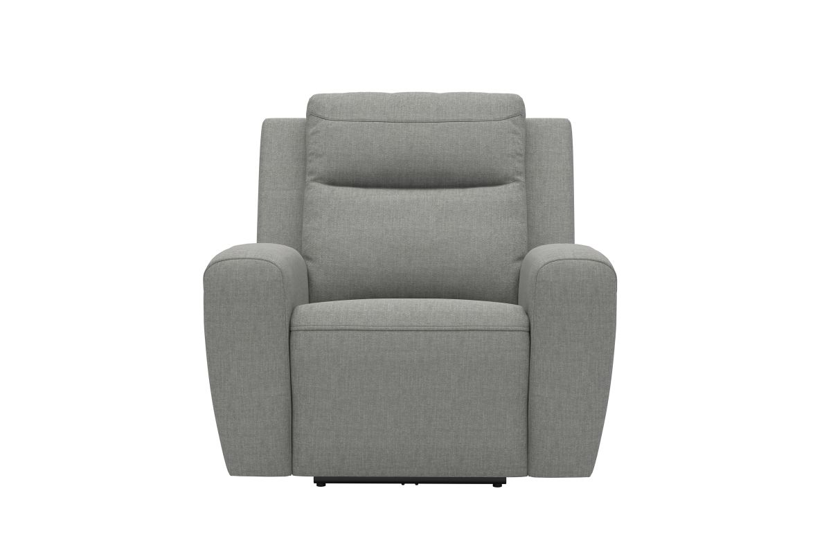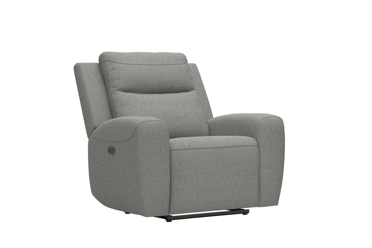 The Decker Dual Power Recliner delivers modern design and personalized comfort in a sleek, standalone silhouette. Upholstered in a light grey fabric, this recliner offers a soft, durable feel with a contemporary look that fits seamlessly into any living space. Clean lines and plush cushioning create an inviting seat designed for everyday relaxation.
