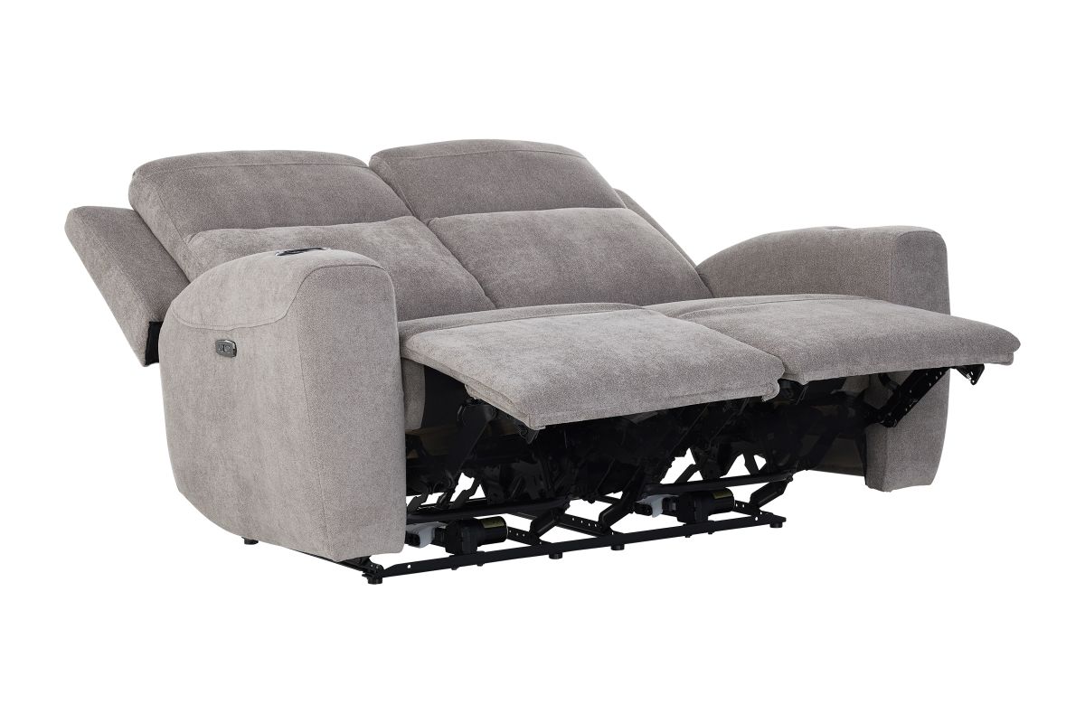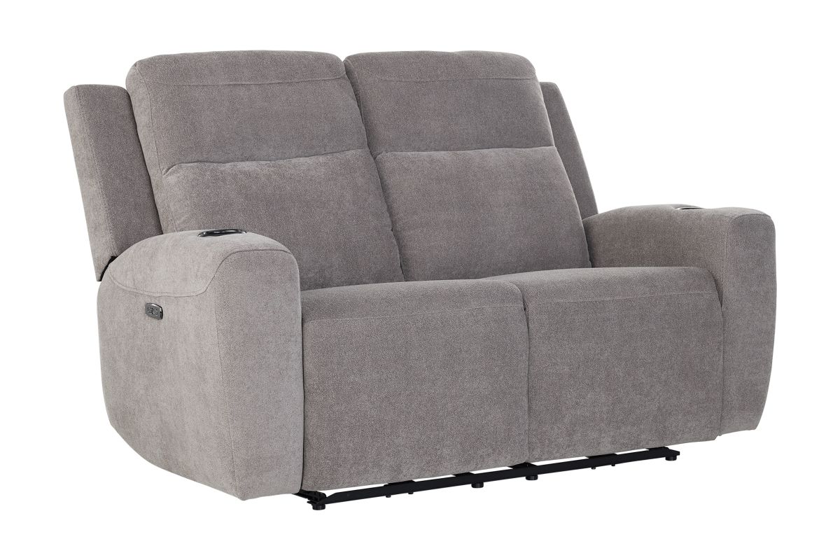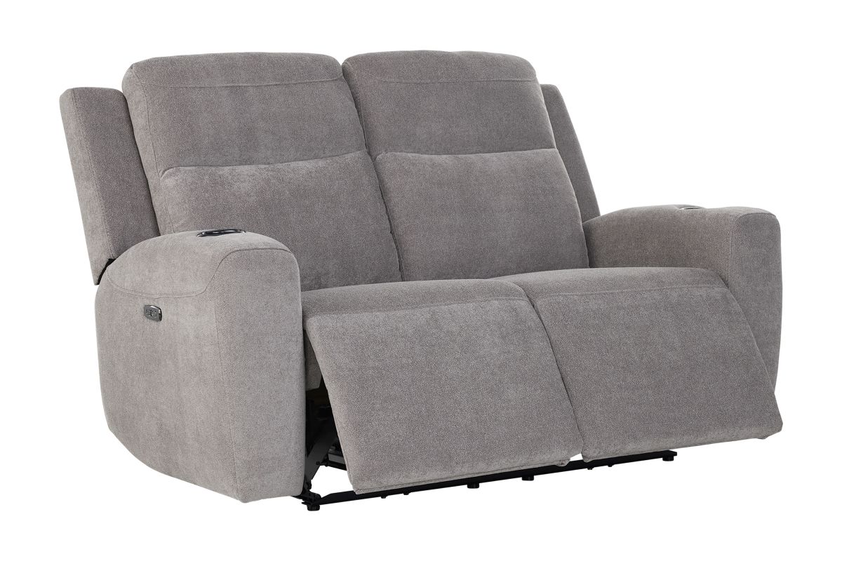 The Ash Dual Power Reclining Loveseat brings modern style and personalized comfort to a compact seating option ideal for any living space. Upholstered in a rich grey fabric, it offers a sleek, contemporary look while remaining soft and durable for everyday use. Clean lines and plush cushioning create an inviting silhouette that feels both stylish and relaxed.