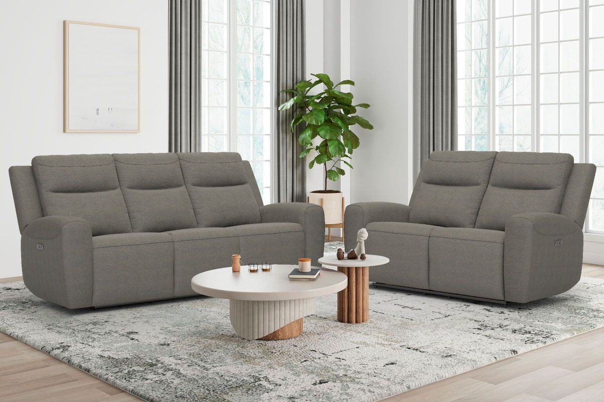 The Ash Dual Power Reclining Sofa delivers modern comfort with effortless functionality, making it the perfect centerpiece for a contemporary living space. Upholstered in a rich dark grey fabric, this sofa offers a warm, refined look while maintaining durability for everyday use. Its clean lines and tailored silhouette create a sleek, modern presence that blends seamlessly with a variety of décor styles.