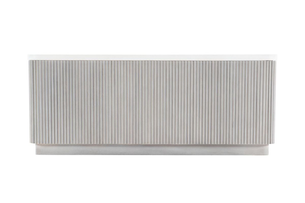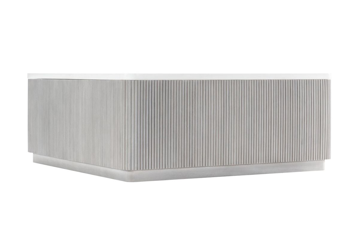 The Colonnade Cocktail Table blends organic elegance with modern design. Its distinctive reeded sides form a sculptural fluted column base, adding texture and dimension from every angle. A smooth faux stone top with softly rounded corners completes the look, offering a refined balance of materials and tones. Effortlessly sophisticated, the Colonnade brings a naturally modern aesthetic to any living space — timeless, versatile, and beautifully crafted.