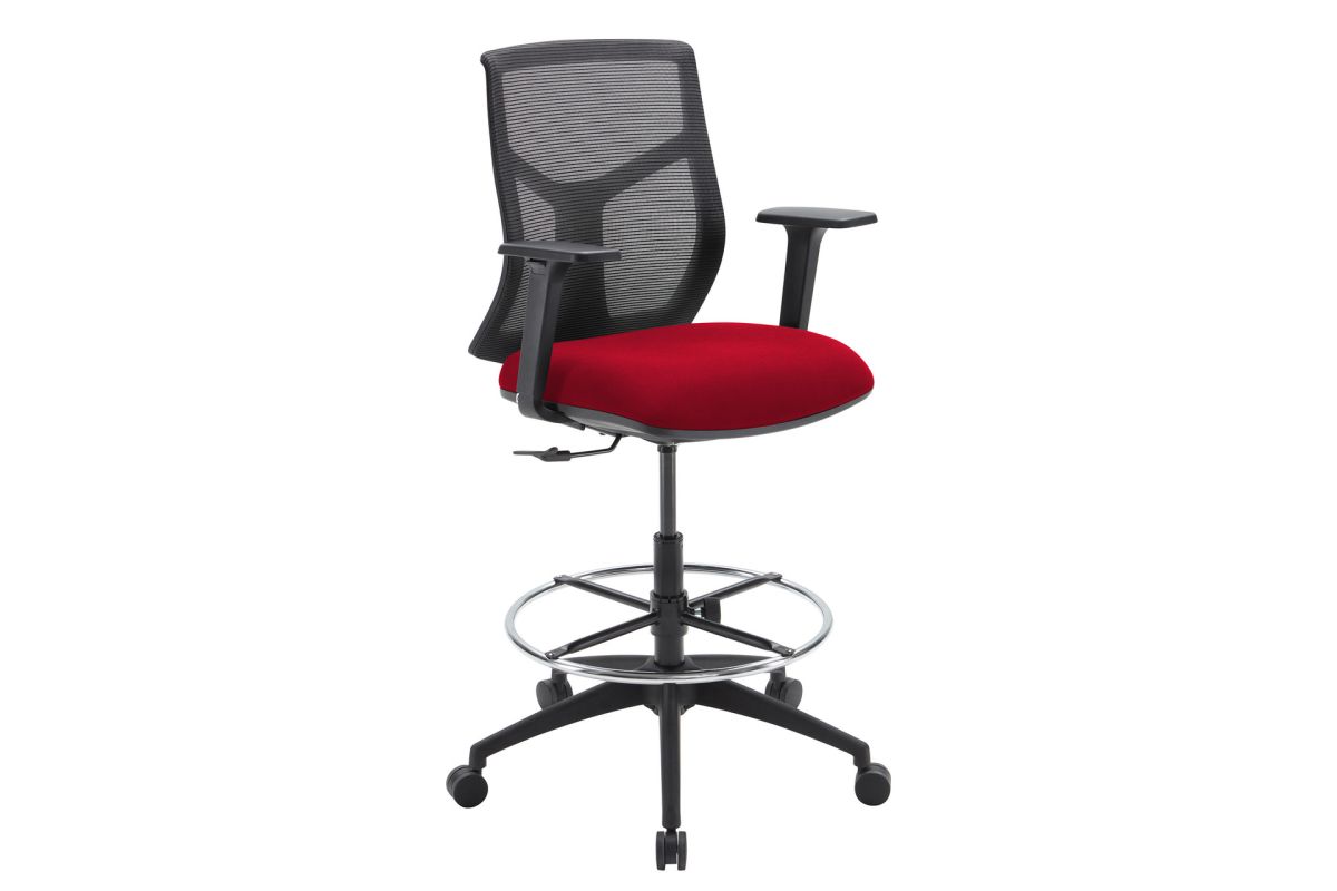 The Starlight Mid Back Stool offers ergonomic support with modern design, perfect for standing desks or high workspaces. Featuring adjustable seat and arm height, 360-degree swivel, and adjustable lumbar support, this stool adapts to your posture and movement for all-day comfort. The waterfall front seat cushion with soft padding provides extra support, while the breathable mesh back enhances airflow. Built with a five-star nylon base and adjustable height chrome footring, the stool is both durable and stylish. Its sturdy design supports up to 300 lbs, making it a reliable option for any workspace. Available in a variety of seat materials, including fabric and PU leather and genuine leather, you can customize the look to fit your aesthetic. Assembly is required.
