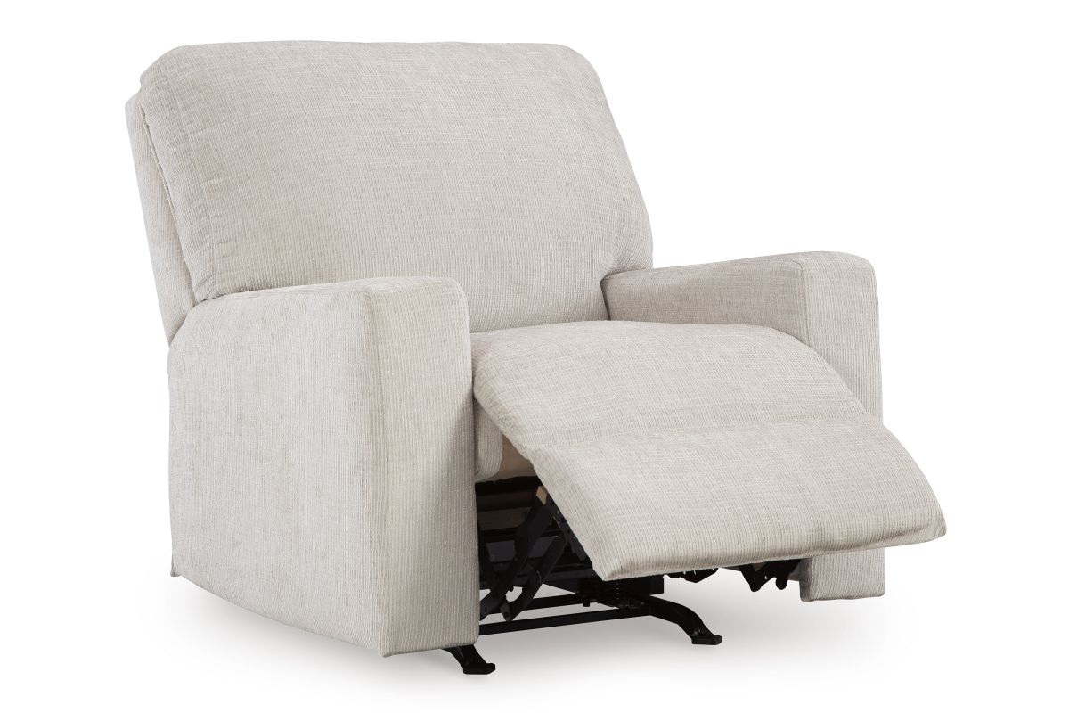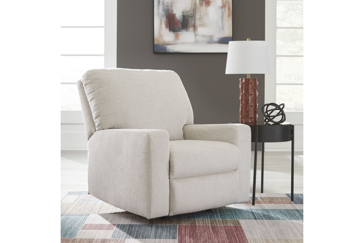 Looking to make a simply chic statement with color? Liven up your living room with this rocker recliner. Its trend-right light neutral upholstery is a perfect blank canvas for adding pops of color. Pairing posh style with everyday comfort, this piece is a welcome addition to contemporary spaces.