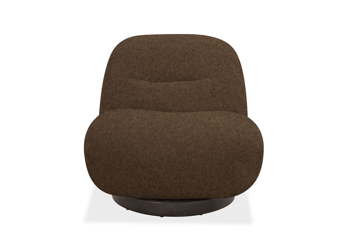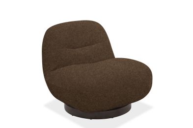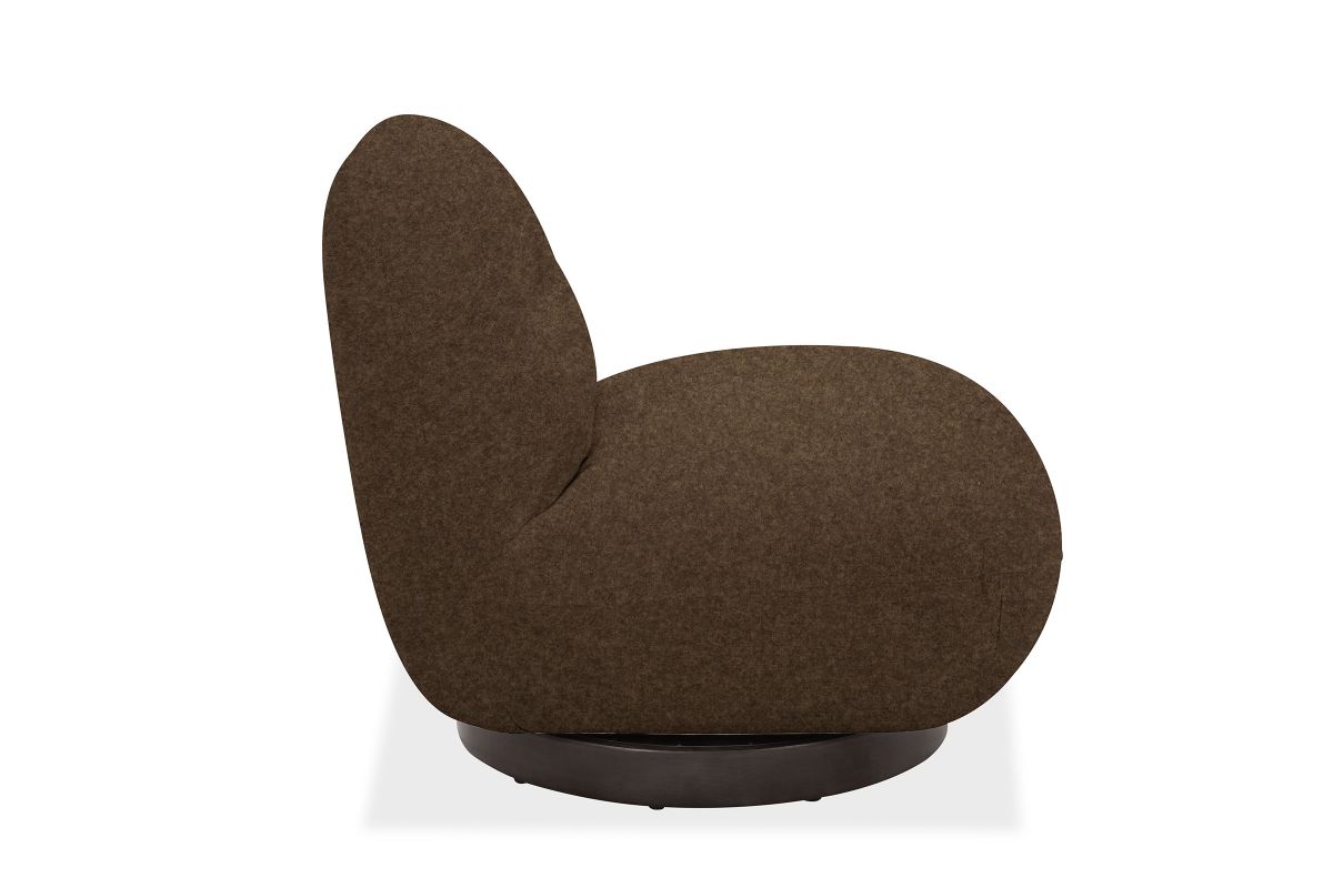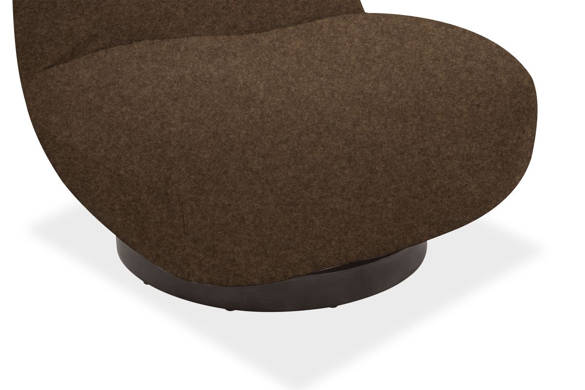 A smooth 360° swivel base enhances functionality, while the solid wood construction provides exceptional stability and introduces a warm, natural contrast to the soft fabric. The visible wood grain adds depth and character, turning the base into a standout design detail rather than just a structural element.