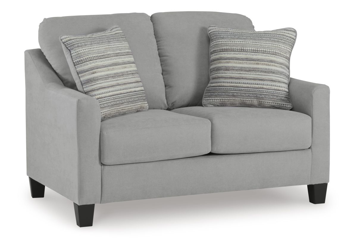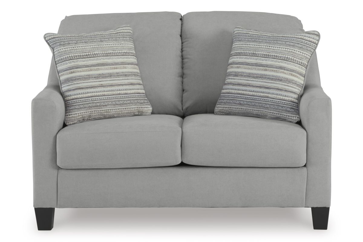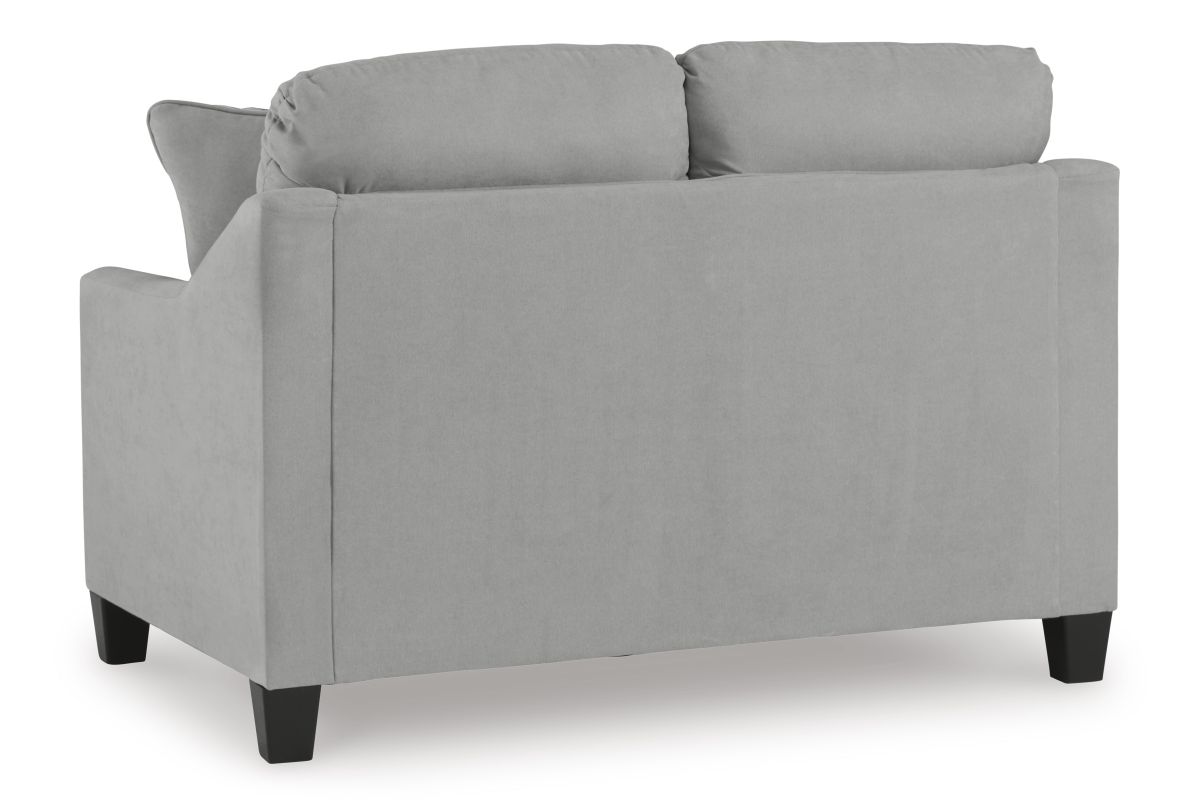 Simply chic comfort. This loveseat’s versatile character is instantly at home where you are, whether your space is casual or contemporary. With the look of suede velvet, you get the ultra-clean, tailored look you love. How’s that for refined relaxation? No assembly is required.
