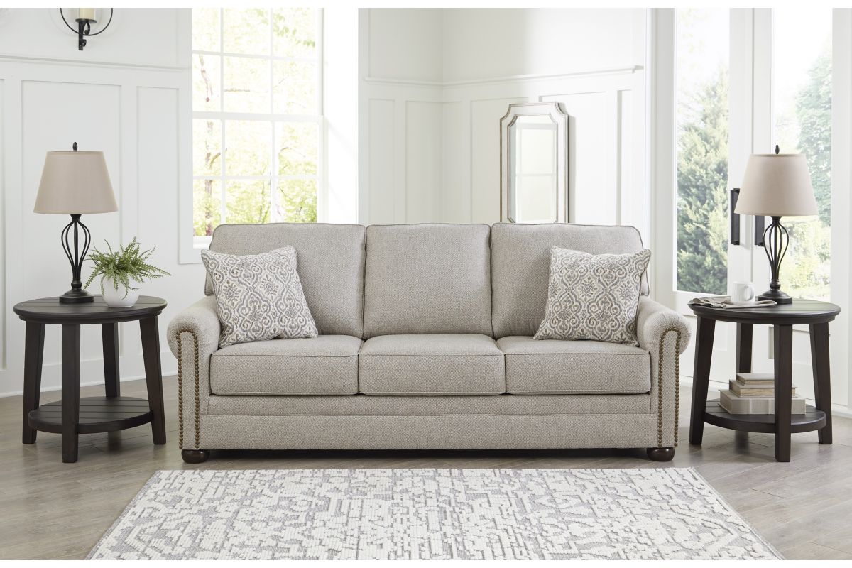 Inspired by the past but rooted firmly in the present, this sofa complements your transitional seating area. Its versatile upholstery is delightfully detailed for a subtle herringbone effect. Designer touches like decorative nailhead trim and bun legs add traditional character. With this sofa's reliable style and comfort, all you need to do is sit back and relax.