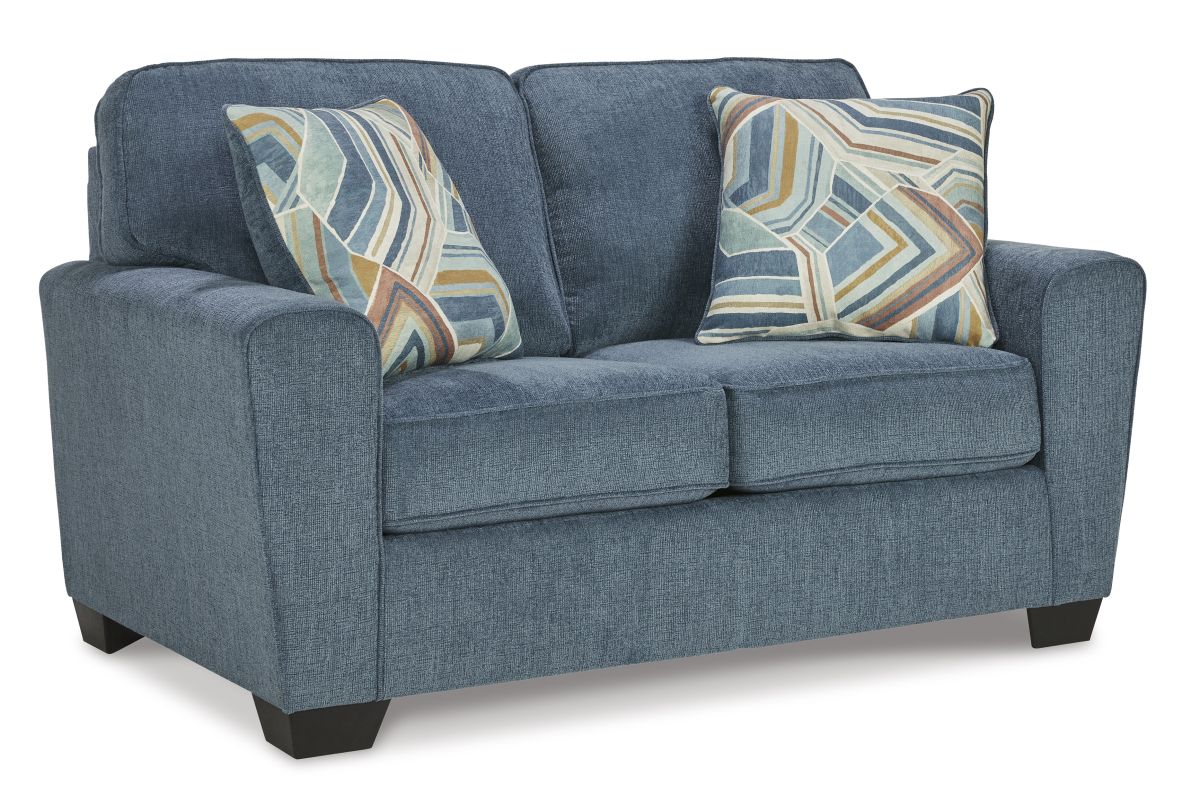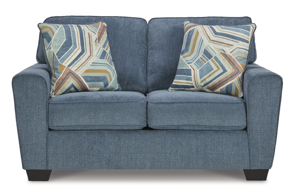 Need a simple style refresh? Liven up your living room essentials with this loveseat. A chunky silhouette holds invitingly ample cushioning you'll long to lounge in. Crosshatched upholstery and accent pillows give the otherwise casual design a delightful visual texture that's perfect for settings from classic to contemporary. No assembly required.