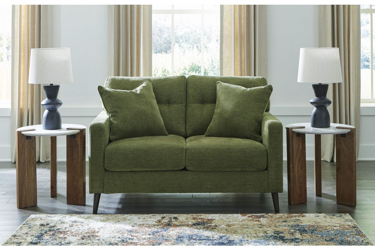 Make room for easy, everyday elegance with the Bixler Living Room Collection. Designed for the modern home, this collection delivers timeless style, plush comfort, and inviting appeal—all wrapped in a clean, contemporary silhouette. This set includes the Bixler Olive Sofa, Loveseat, Accent Chair, Right-Arm Facing Corner Chaise, the Isanti Round Cocktail Table, two Isanti Round End Tables, and a 2-Pack of the Scarbot Paper Table Lamps, and the Ladonia 5' x 7' Rug. Some assembly is required upoon delivery.
