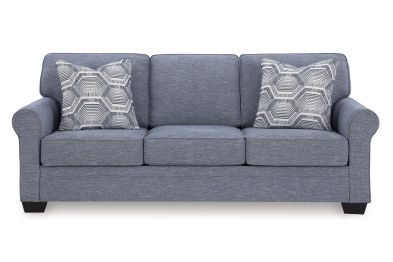 This sofa is defined by comfort, convenience and classic style. Soft to the touch and stain-resistant, the family-friendly Next-Gen Nuvella™ fabric is easy to maintain. And you'll love the universal appeal of its denim-inspired hue. With roll arms adding a dash of traditional flair, the sofa is a simply chic approach to everyday relaxation.