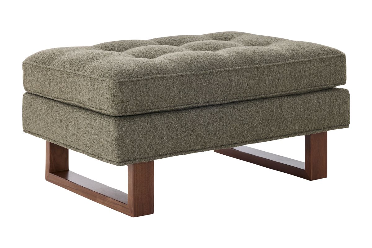 Designed with clean, tailored lines and supported by a sleek walnut base, the Bennett Ottoman carries the same retro-meets-modern aesthetic that defines the collection. Its generously cushioned top offers a comfortable place to rest your feet, an extra seat when entertaining, or even a stylish surface for a decorative tray.