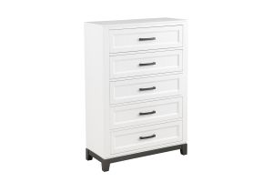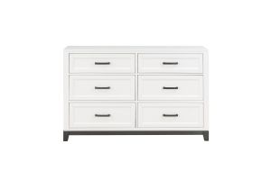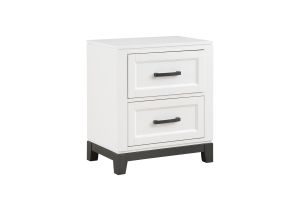 The Garretson Collection blends transitional lines with rustic styling to create an elegant addition for your bedroom. The nightstand features a white finish while metal bar hardware accents the picture frame drawer fronts of the nightstand. Assembly required