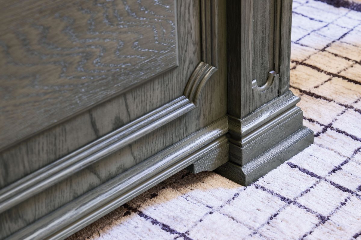 Transform your bedroom into a sophisticated sanctuary with the Radcliff Bedroom Set. This set features refined molding, giving it an elegant and timeless look. The high headboard adds a touch of grandeur to your space, while the touch-button mood-lighting in the headboard creates a relaxing ambiance. With two USB ports conveniently located in the headboard, you can easily charge your devices while lounging in bed. The black felt lined top drawers of all the case pieces provide a luxurious touch, and the nightstand sliding top with hidden storage offers safe keeping of your valuables. Finished with cedar veneer bottom drawers, this set combines style and durability for long-lasting use.