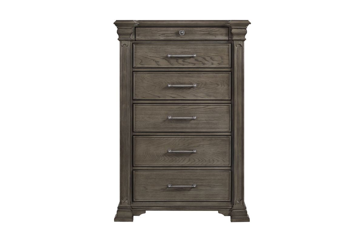 The 6-Drawer Chest in Grey is a stunning storage solution for any bedroom. With six spacious drawers, there is plenty of room to organize your clothes and belongings. The top drawer is lined with black felt, providing a luxurious space for delicate items. The bottom drawer features cedar veneer, offering a fresh scent and protecting your belongings from pests. The elegant molding adds a touch of sophistication to the chest, while the combination of knob and pull handles allows for easy access to your stored items. This stylish and functional piece will elevate the look of any bedroom while providing ample storage space.