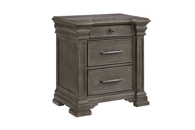 Introducing the 3-Drawer Nightstand Radcliff Nightstand, a stunning piece of furniture that effortlessly combines transitional design with functional storage. Featuring three spacious drawers, including a sliding top and a hidden storage compartment in the back, this nightstand offers ample space to keep your essentials organized and within reach. The black felt lined top drawer is perfect for keeping delicate items safe and secure, while the cedar veneer bottom drawer adds a touch of luxury. With elegant molding details and a sleek grey finish, this nightstand makes a timeless addition to any bedroom decor.