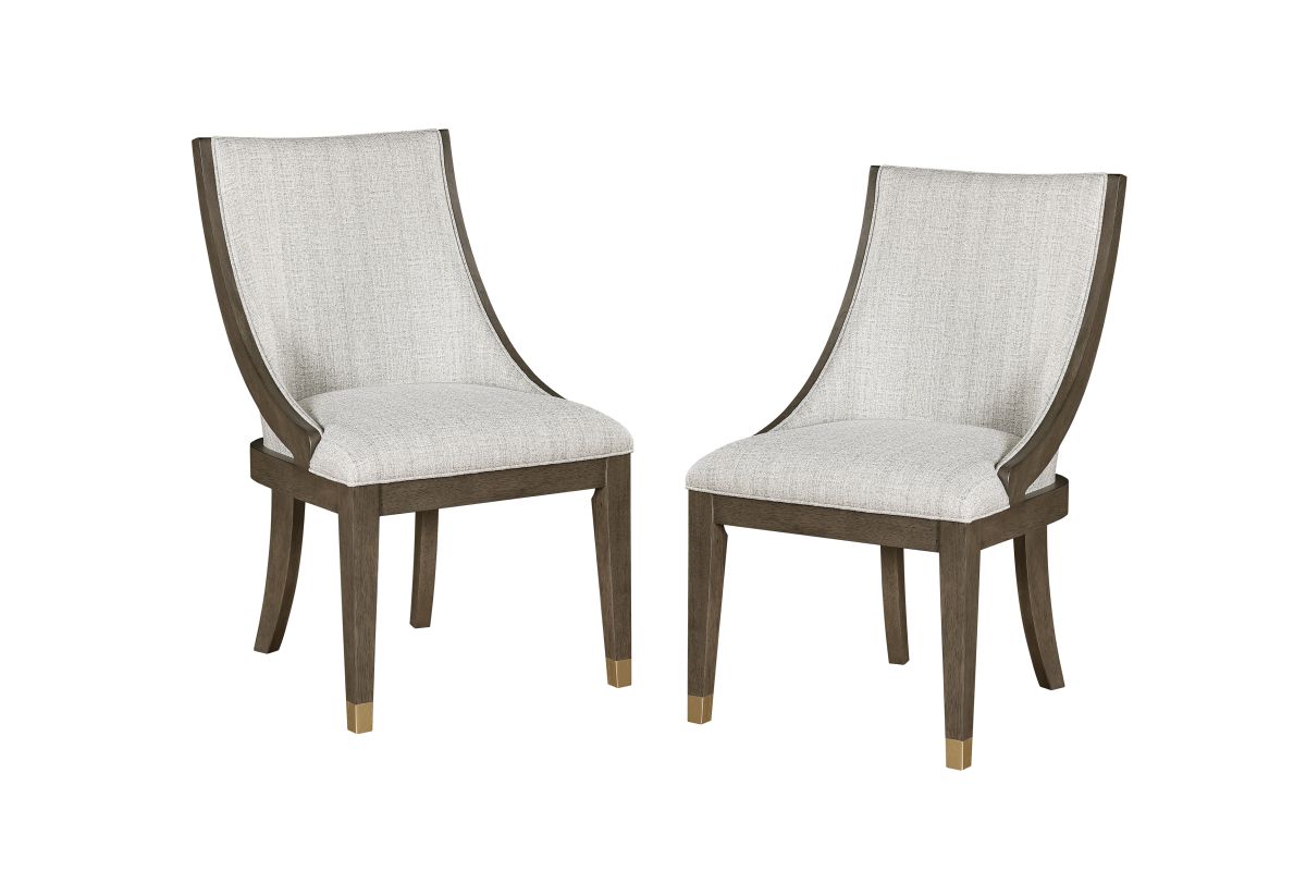 Curating a space that reflects your love for modern lines and desire for a sophisticated aesthetic becomes reality with the addition of the Griffin Collection. A brown finish highlights the arm chair's oak veneer pattern, its rich hue complemented by the gold finish metal banding that graces the chair's legs. The wood framed side chair features beige linen-like fabric upholstery covering the seat and back, providing perfect contrasting complement to the brown finish of the collection.