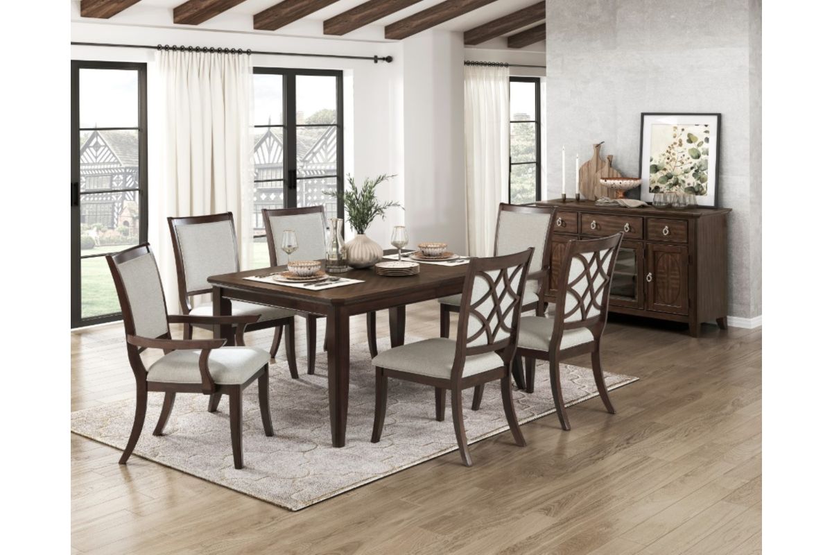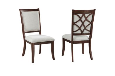 Enhance your dining or living space with the refined elegance of this side chair. This chair is expertly crafted with a sturdy wood frame, showcasing a rich cherry finish complemented by a sophisticated dark walnut inlay, adding a touch of classic charm. The plush, textured fabric upholstery provides exceptional comfort, making it perfect for everyday use or special occasions. Its design seamlessly blends traditional aesthetics with modern comfort, making it a versatile addition to any home decor. While assembly is required, the result is a durable and stylish side chair that supports up to 250lbs, enhancing both the aesthetic and functionality of your space.