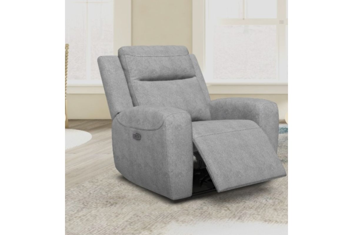 Experience personalized comfort with the Maddox Power Recliner, featuring a motorized reclining mechanism and adjustable power headrest. Upholstered in soft white fabric, this recliner seamlessly blends modern technology with plush comfort for your living room or lounge area.