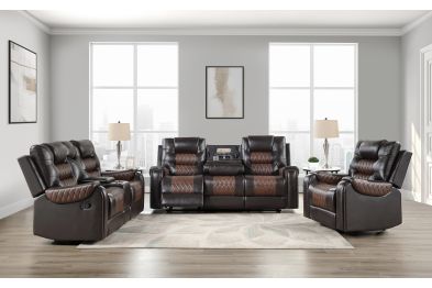 Relax in style and comfort with the Hart Glider Reclining Chair (Model SH8890BRW-1), featuring smooth gliding motion combined with easy reclining functionality. Upholstered in rich brown fabric, this chair adds a warm and inviting touch to any living space.