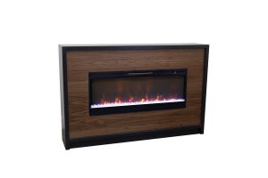 The Aria 66 inch Fireplace TV Stand boasts chic, modern, contemporary style. Exquisitely crafted from Poplar Solids and Okoume Veneers and Walnut Veneers, this Entertainment Center with Fireplace features clean, structural lines, a Two-Tone Black and Walnut finish, Black hardware and plinth base. This Fireplace TV Console will accommodate TVs up to 80 inches and will provide ample storage for media and gaming consoles behind two doors. Cable management openings on the back panel will keep all cords and wires concealed. The 26" Electric Fireplace Insert includes a remote control and multiple settings allow for heat up to 400 square feet. Four (included) screws make securing the fireplace insert to the console quick and simple. Minimal assembly required.