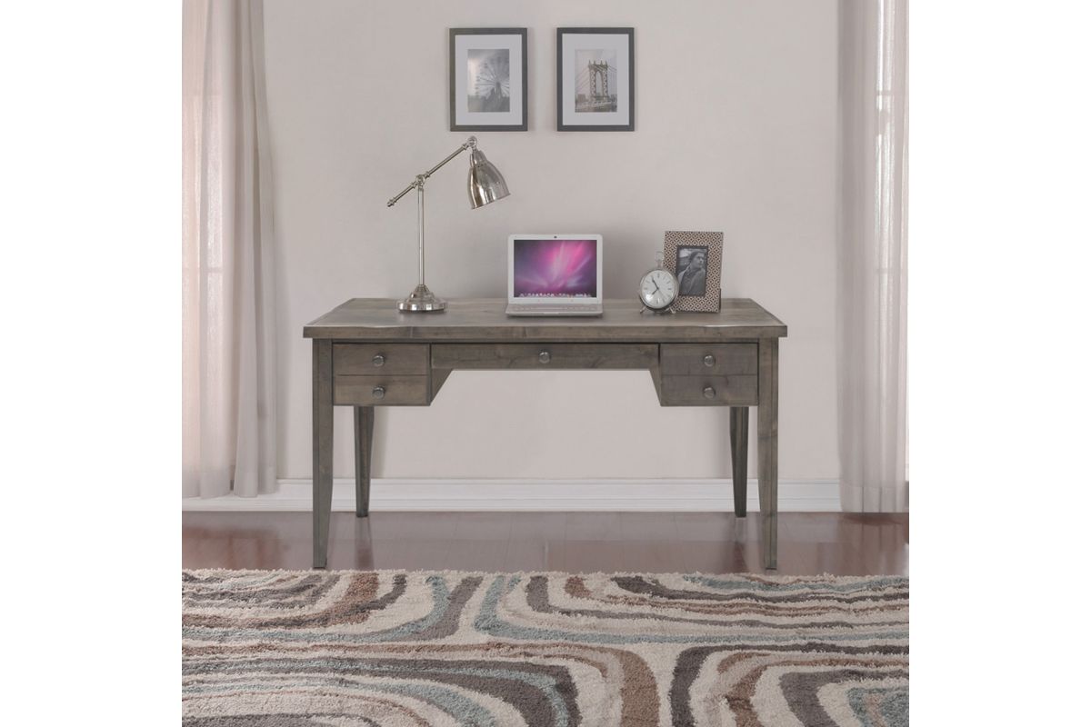 The Joshua Creek Writing Desk seamlessly combines rustic allure with modern design, making it a charming addition to your home office. This desk features a drop-down keyboard drawer and two additional storage drawers, ensuring ample organization for all your work essentials. Its 54" width provides a spacious work area to enhance productivity and style. No Assembly Required.